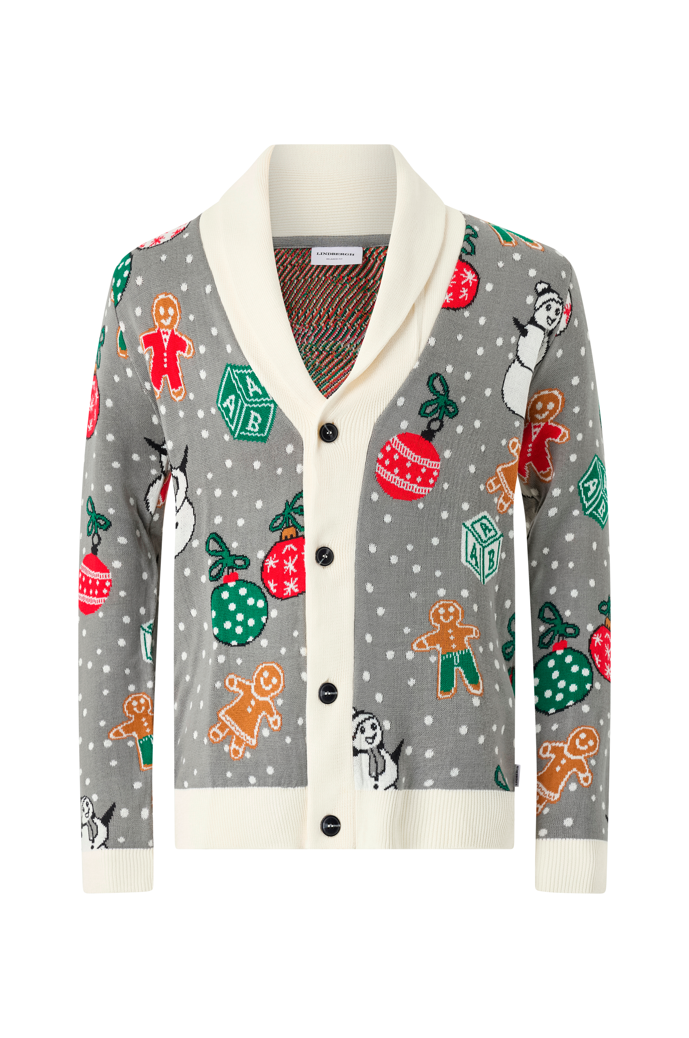 • Langærmet, fintstrikket cardigan med julemotiv foran• V-formet halsudskæring med krave• Knapper foran• Ribstrik ved manchetterne og ved nederste kant