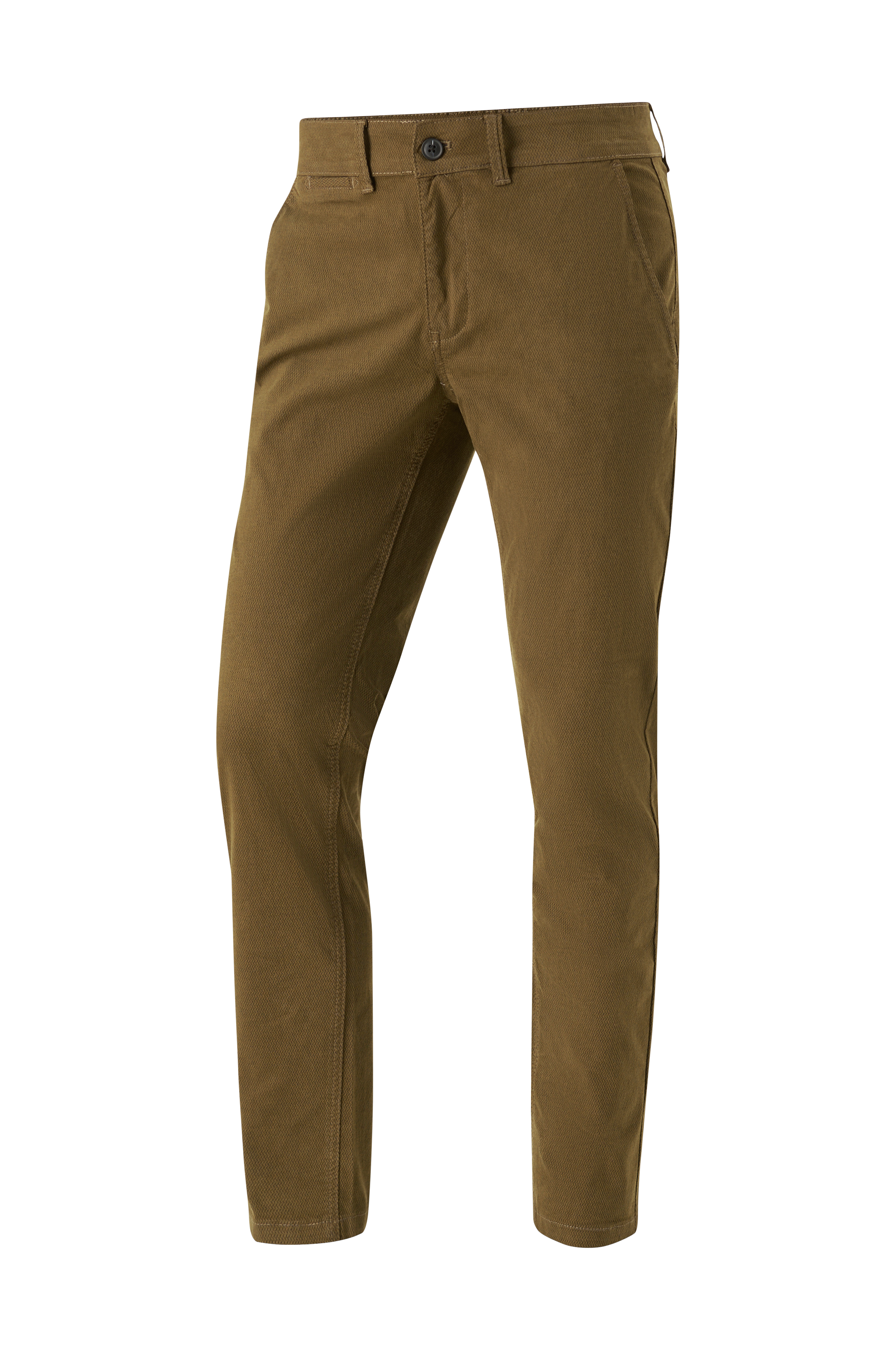 • Model med indsnævrende benafslutning• Taljebånd med bæltestropper• Gylp med lynlås• Skrå lommer foran• Indlagte baglommer med knap