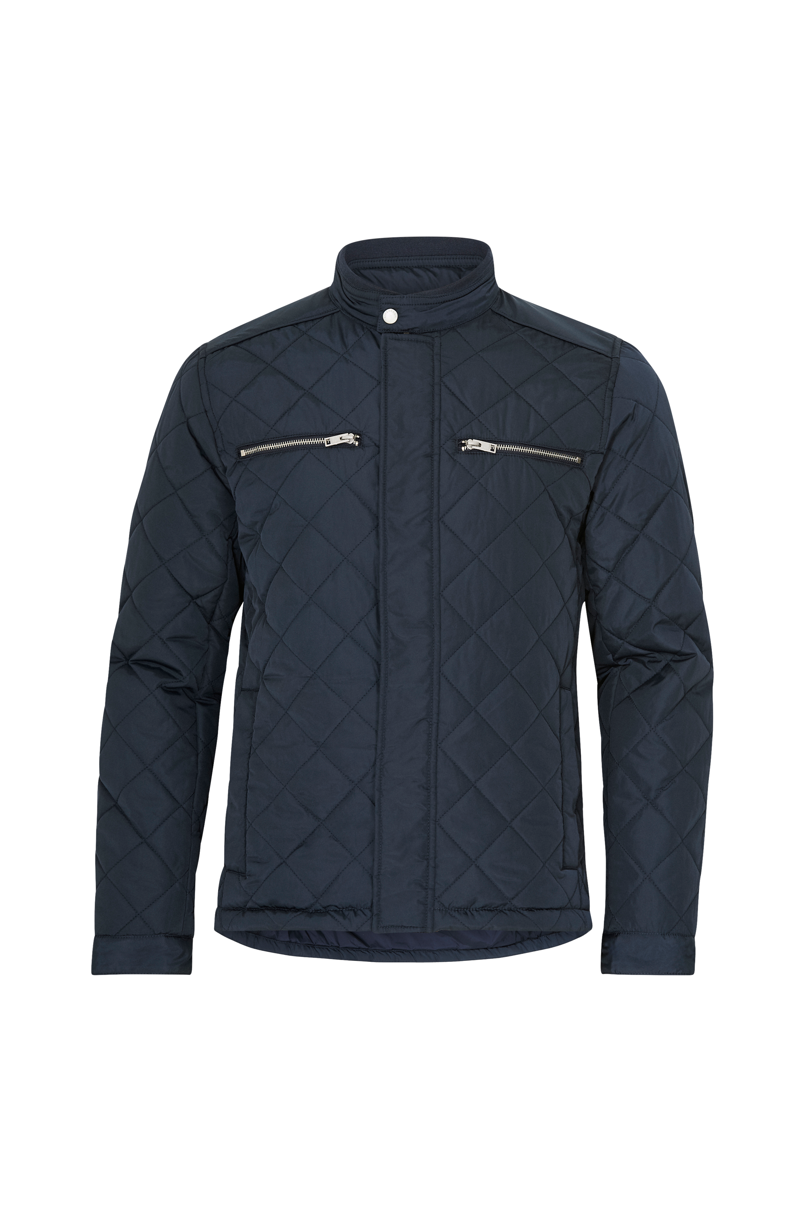 • Quiltet, foret jakke• Ribbet krave• Lynlås• Vindflap med trykknapper• To lommer nederst med trykknap• To brystlommer med lynlås• En inderlomme• Justérbar ærmeafslutning med trykknapper• Længde: 70 cm i størrelse M