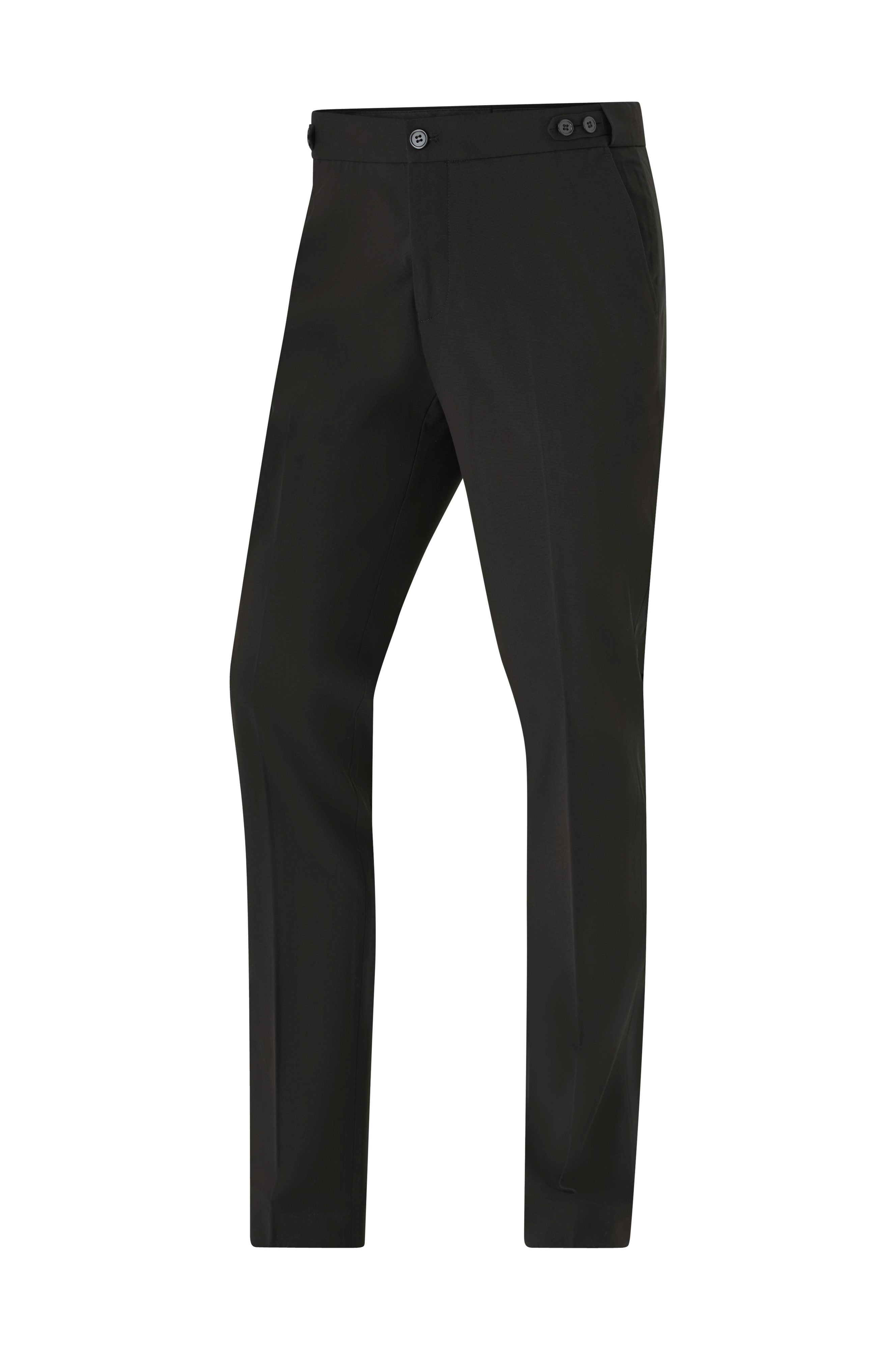 • Elastiske smokingbukser i viskoseblanding• Sidelommer• Lommer med knap bagpå• Gylp med lynlås med knap på toppen• Pressefold langs benene• Smalle, lige ben• Indre benlængde: 85 cm i størrelse 50