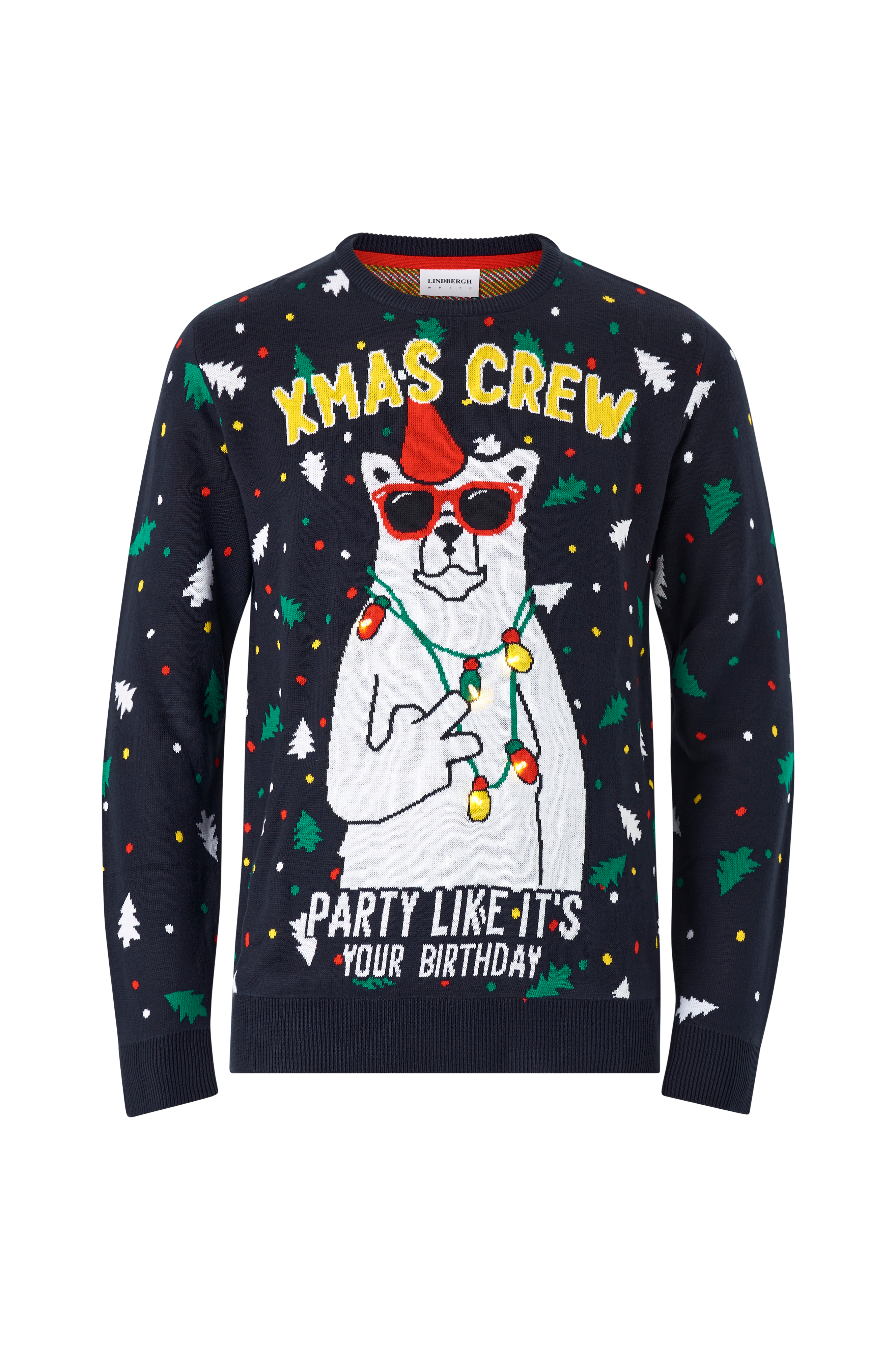• Strikket trøje med julemotiv og små lamper• Ribstrik ved manchetterne og nederst