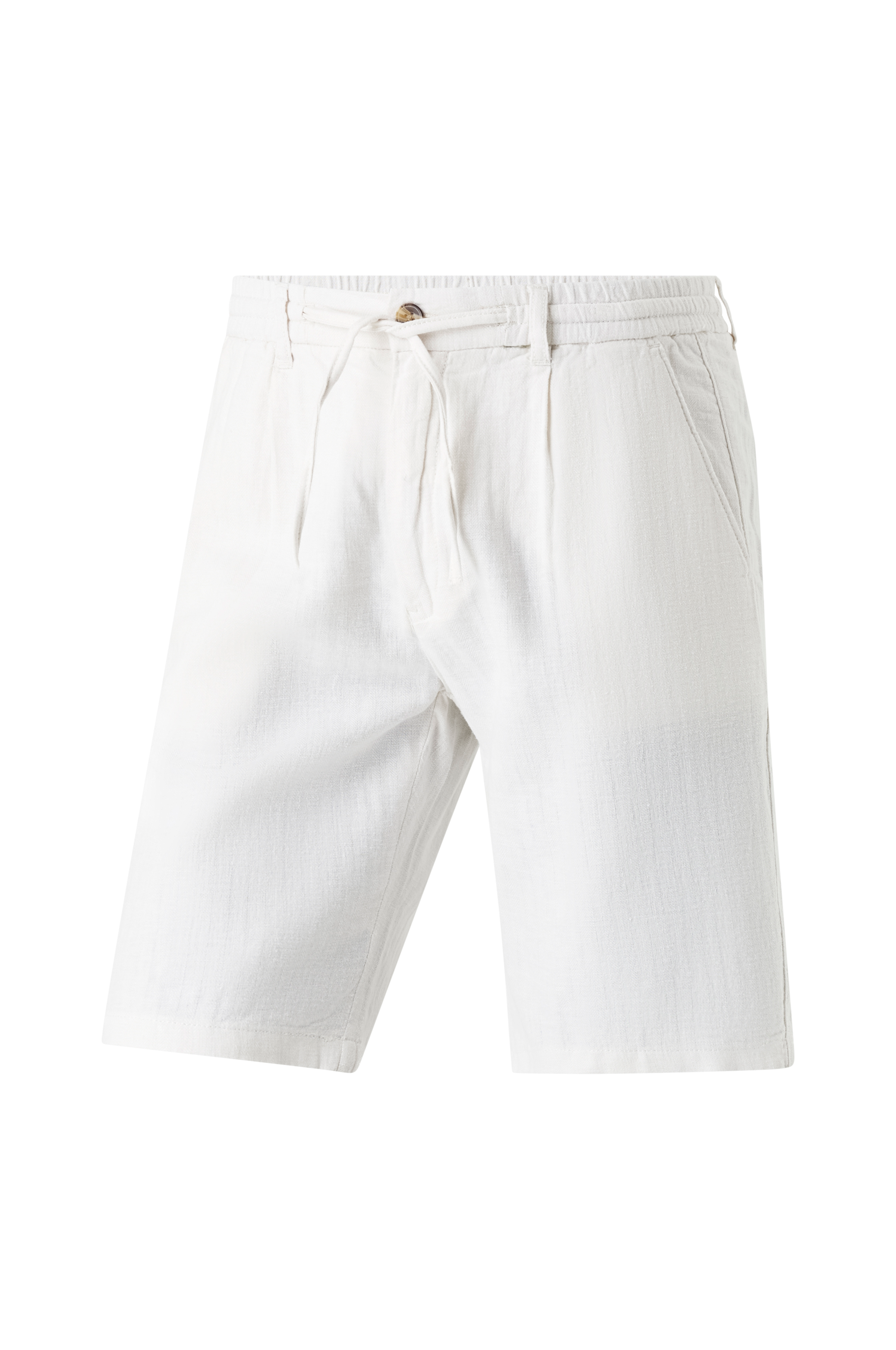 • Shorts i hørblanding• Vævet kvalitet med et sildebensmønster• Elastisk talje med knap og træksnørre• Bæltestropper• Gylp med lynlås• To lommer foran• To baglommer med knap