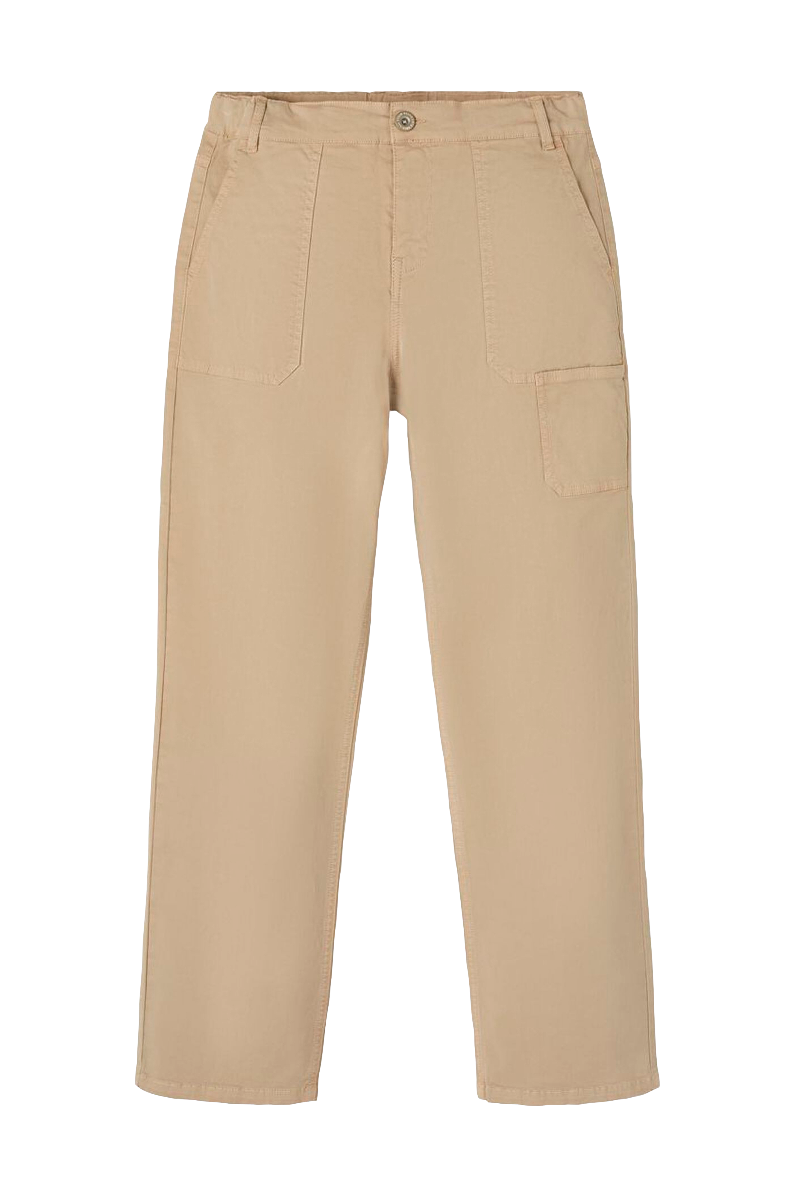 Bukser i vævet bomuldsstretch med lige ben. Regulerbar talje. To lommer foran og to snydelommer bagpå. En benlomme.