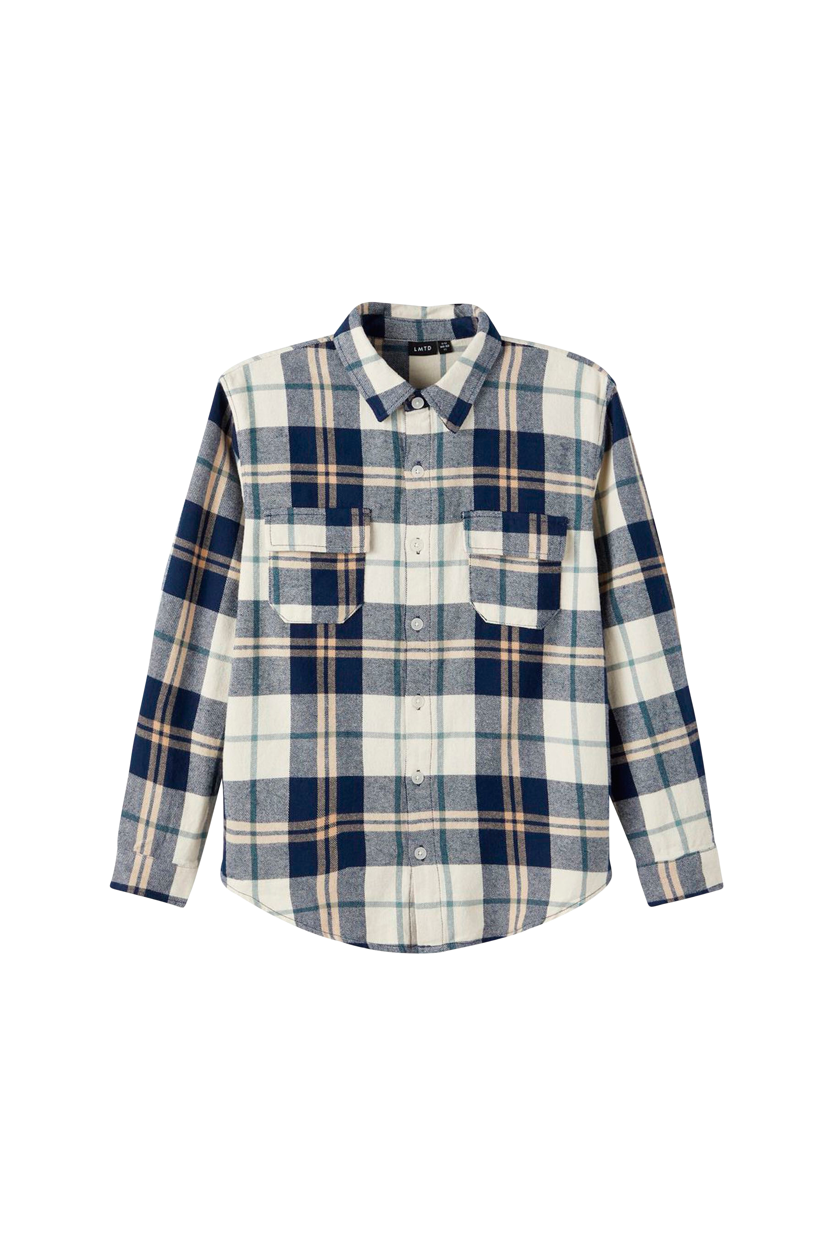 Ternet skjorte i bomuldsflonel. En brystlomme med klap. Knap i ærmekant.