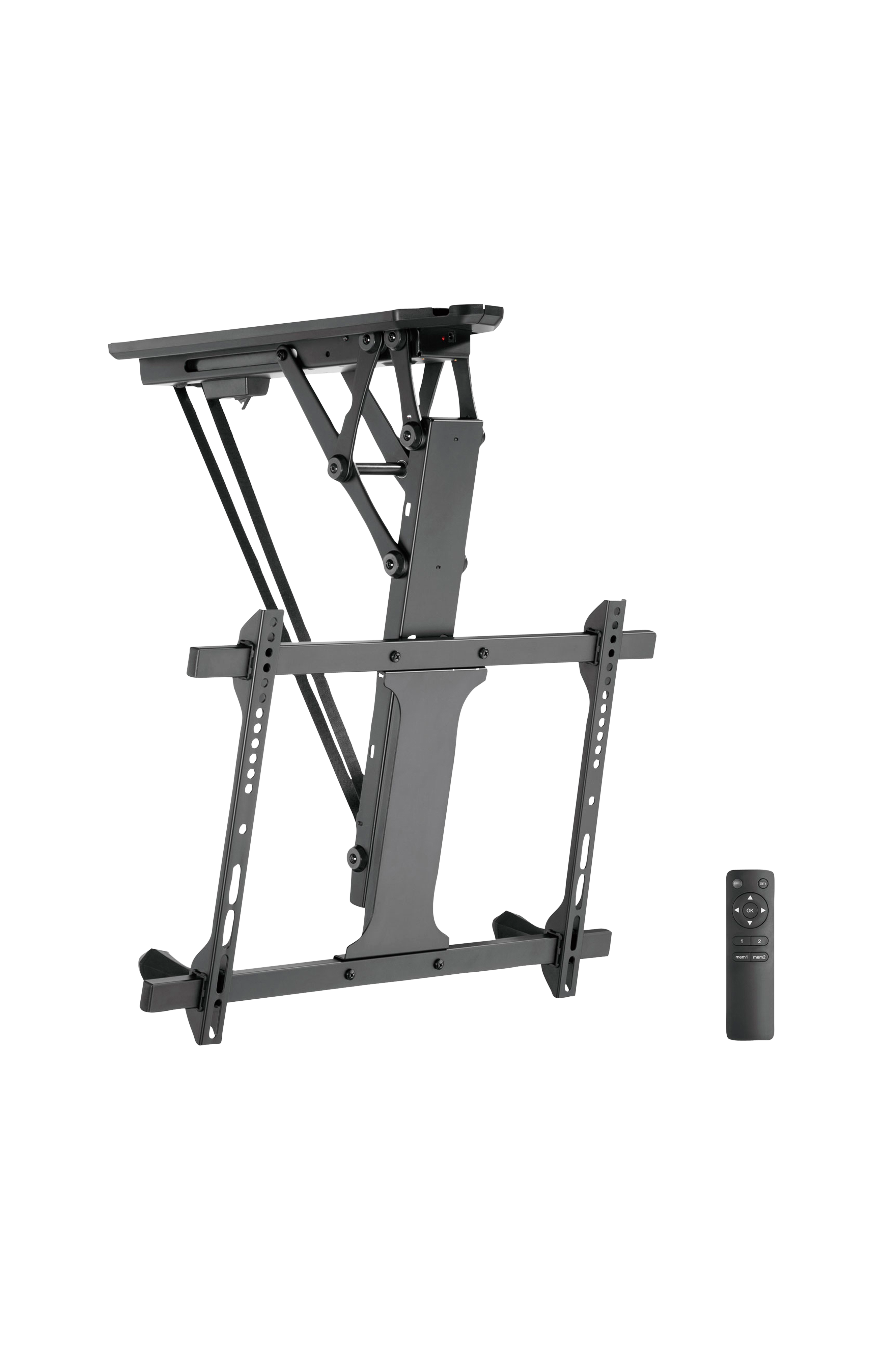 Motoriseret flipdown-beslag som sparer plads og opbevarer TV'et ude af syne, indtil det skal bruges. Perfekt til flade overflader og skrå lofter både i hjemmet og på kontoret.