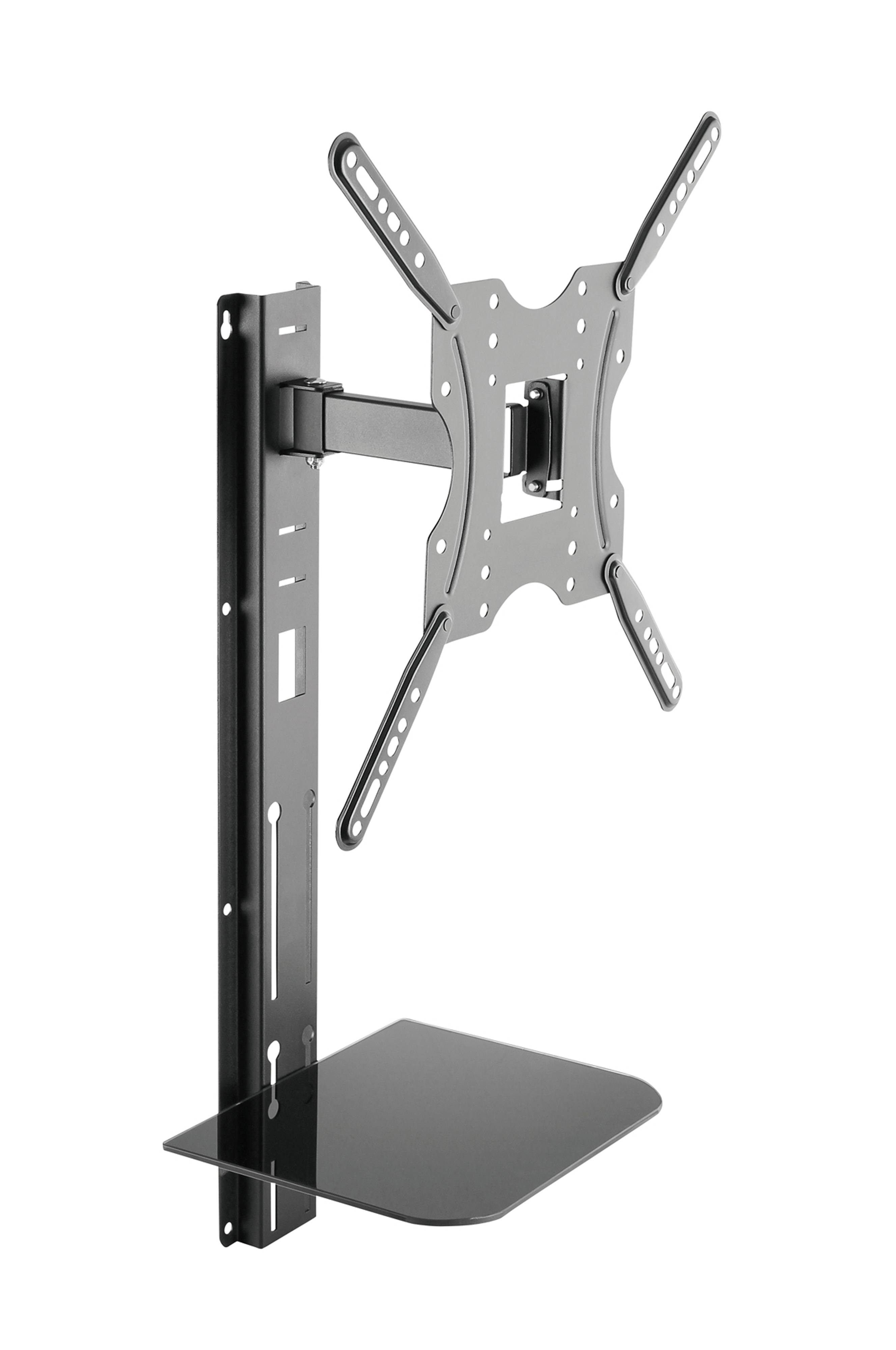 Vægbeslag med glashylde. Nemt monteret vægbeslag med hylde til f.eks. spillekonsol, digitalboks eller BluRay-afspiller. Kompatibel med VESA-standarden op til 400 x 400 mm.