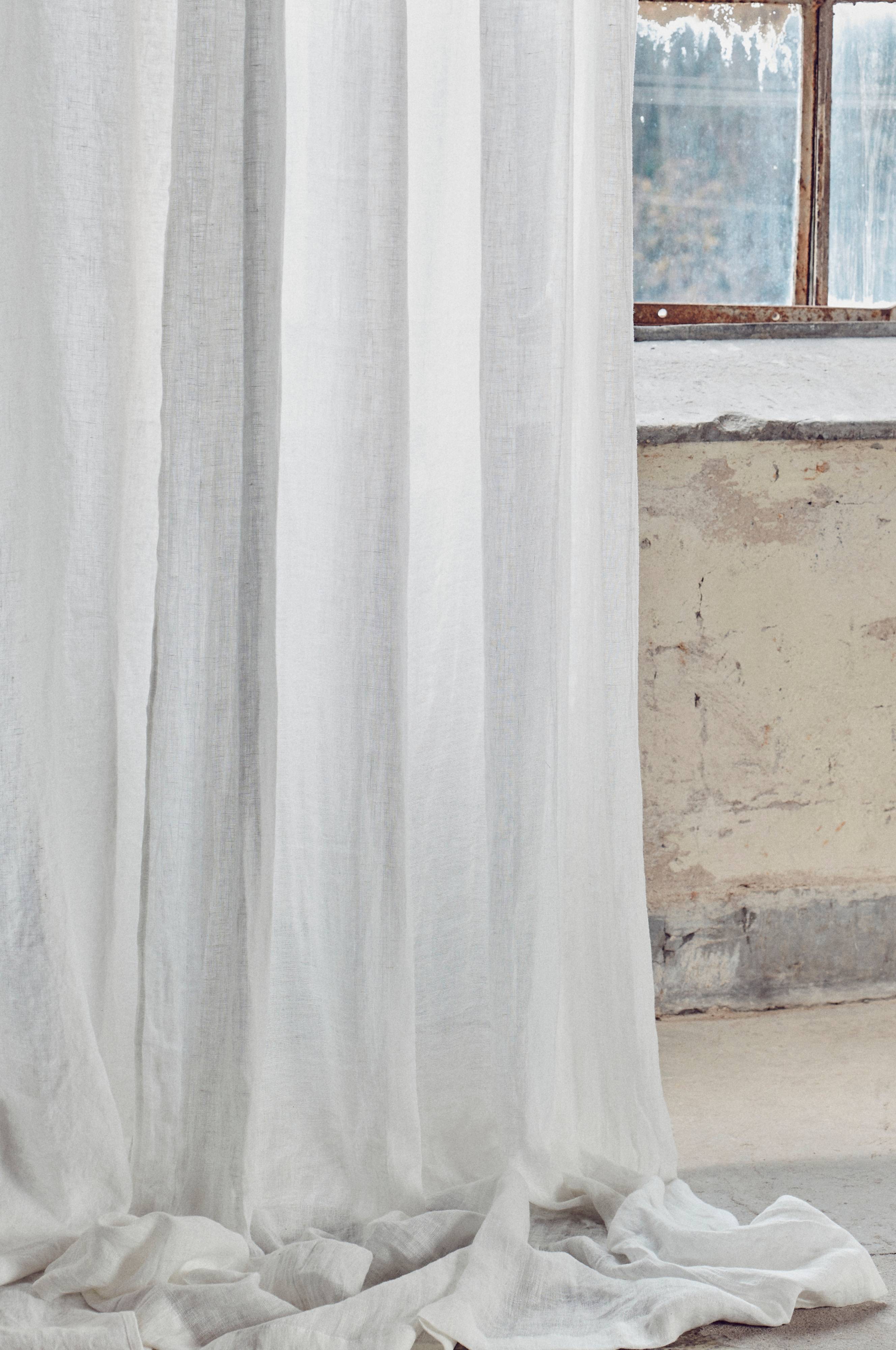 Gardin i 100% europæisk hør. Dette er en meget tynd og luftig kvalitet. I den øverste kant sidder et kombibånd til ophængning. Fås i 2 forskellige bredder. Længde 280 cm. Vaskeanvisning: vaskes ved maks. 60 grader og tørretumbles. Sælges i 1-pak.