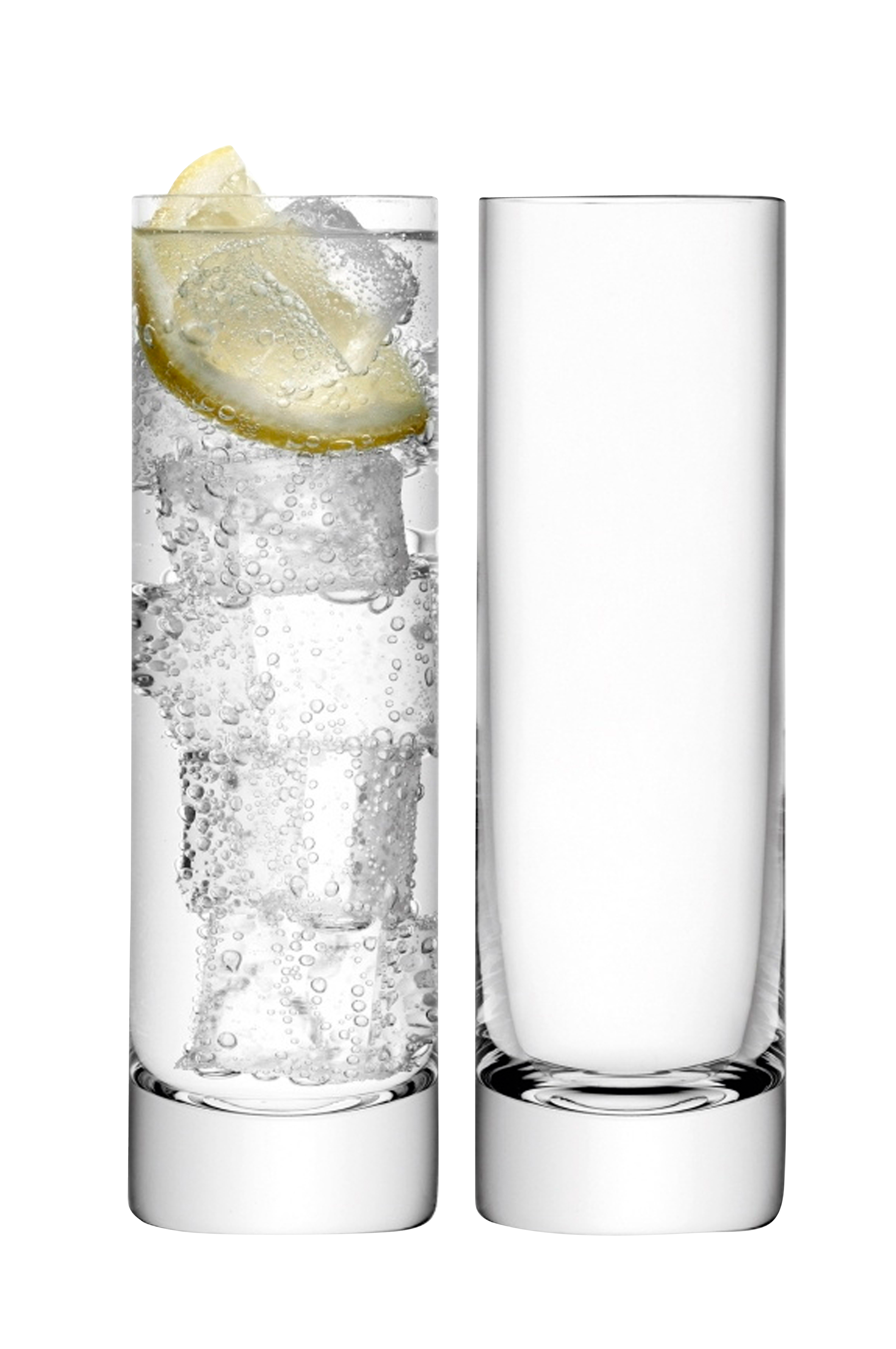 Sæt med to slanke highballs med cylindrisk form, fine kanter og en solid glasbund. Designet til longdrinks, vand og mange andre drinks.