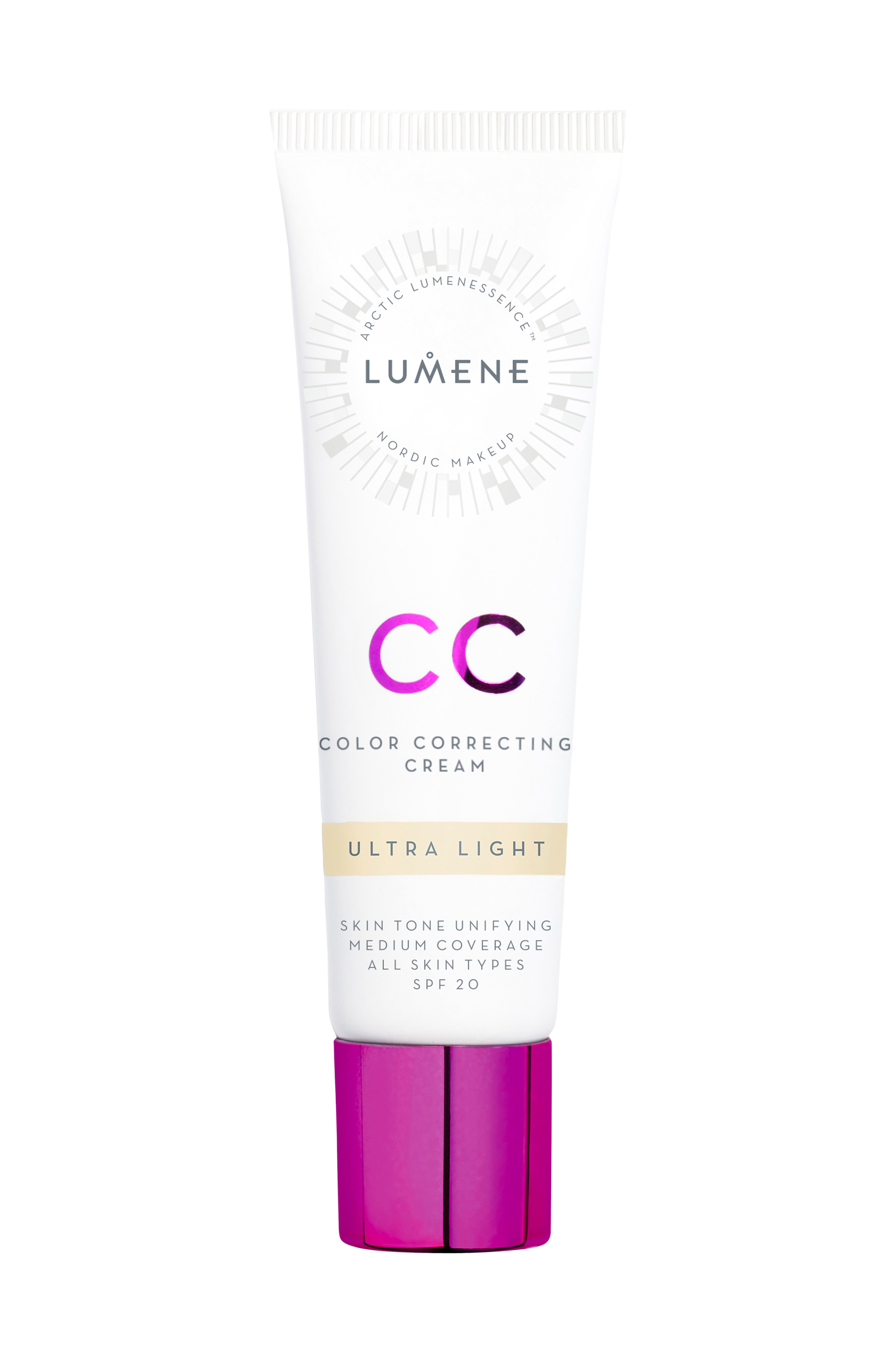 CC Color Correcting Cream er en let, medium dækkende og flydende foundation, som reducerer rødmen, udjævner hudtonen og giver en naturlig glød. Sammensætningen er beriget med nordisk tyttebær, som udjævner hudtonen, og fugtgivende nordisk kildevand. Cremen er let at påføre og reducerer småfejl og rødmen for en perfekt finish. Beskytter huden mod de skadelige effekter af UVA/UVB-stråling (SPF 20). Passer til alle hudtyper. 100% vegansk.