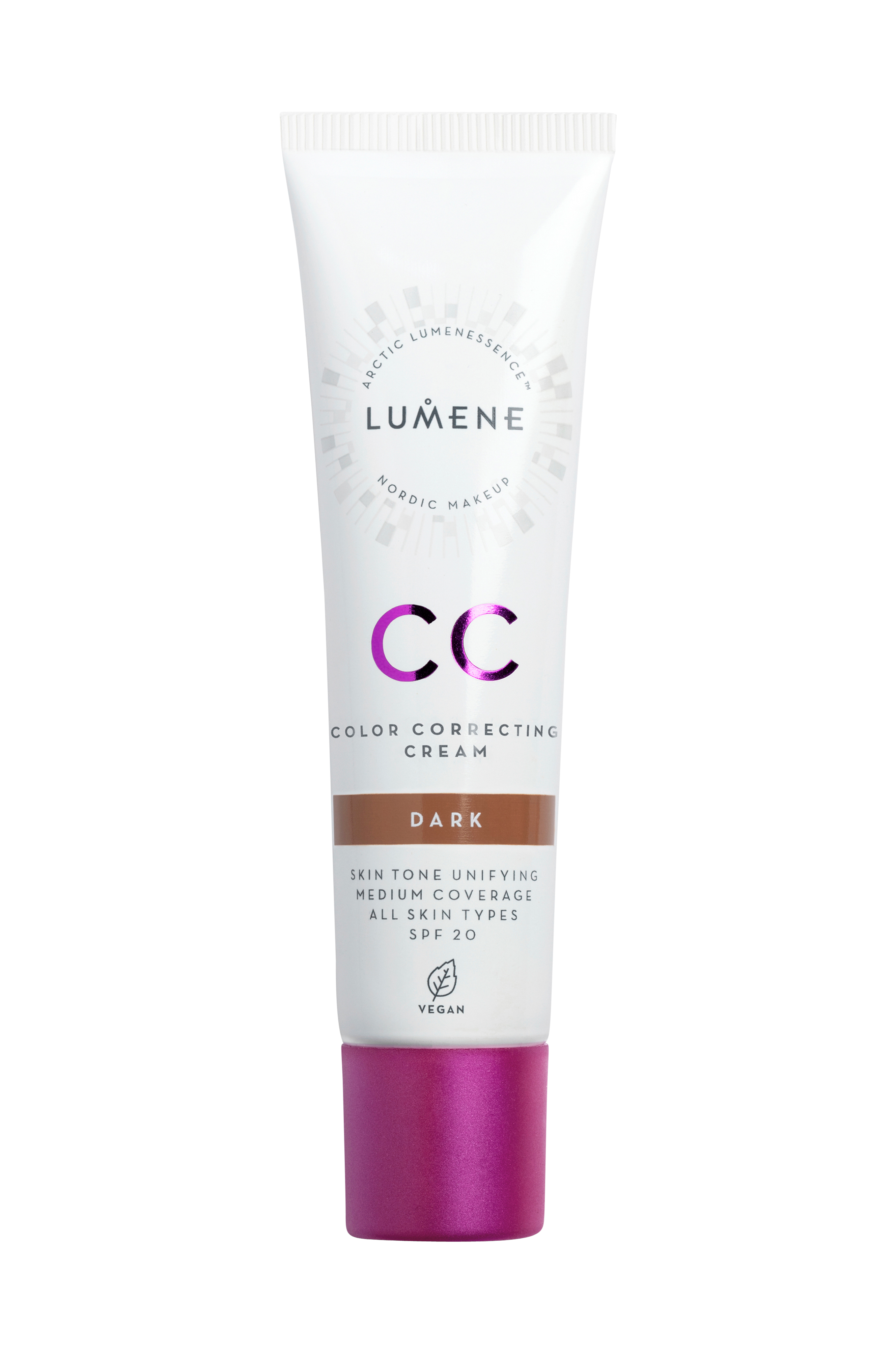 CC Color Correcting Cream er en let, medium dækkende og flydende foundation, som reducerer rødmen, udjævner hudtonen og giver en naturlig glød. Sammensætningen er beriget med nordisk tyttebær, som udjævner hudtonen, og fugtgivende nordisk kildevand. Cremen er let at påføre og reducerer småfejl og rødmen for en perfekt finish. Beskytter huden mod de skadelige effekter af UVA/UVB-stråling (SPF 20). Passer til alle hudtyper. 100% vegansk.