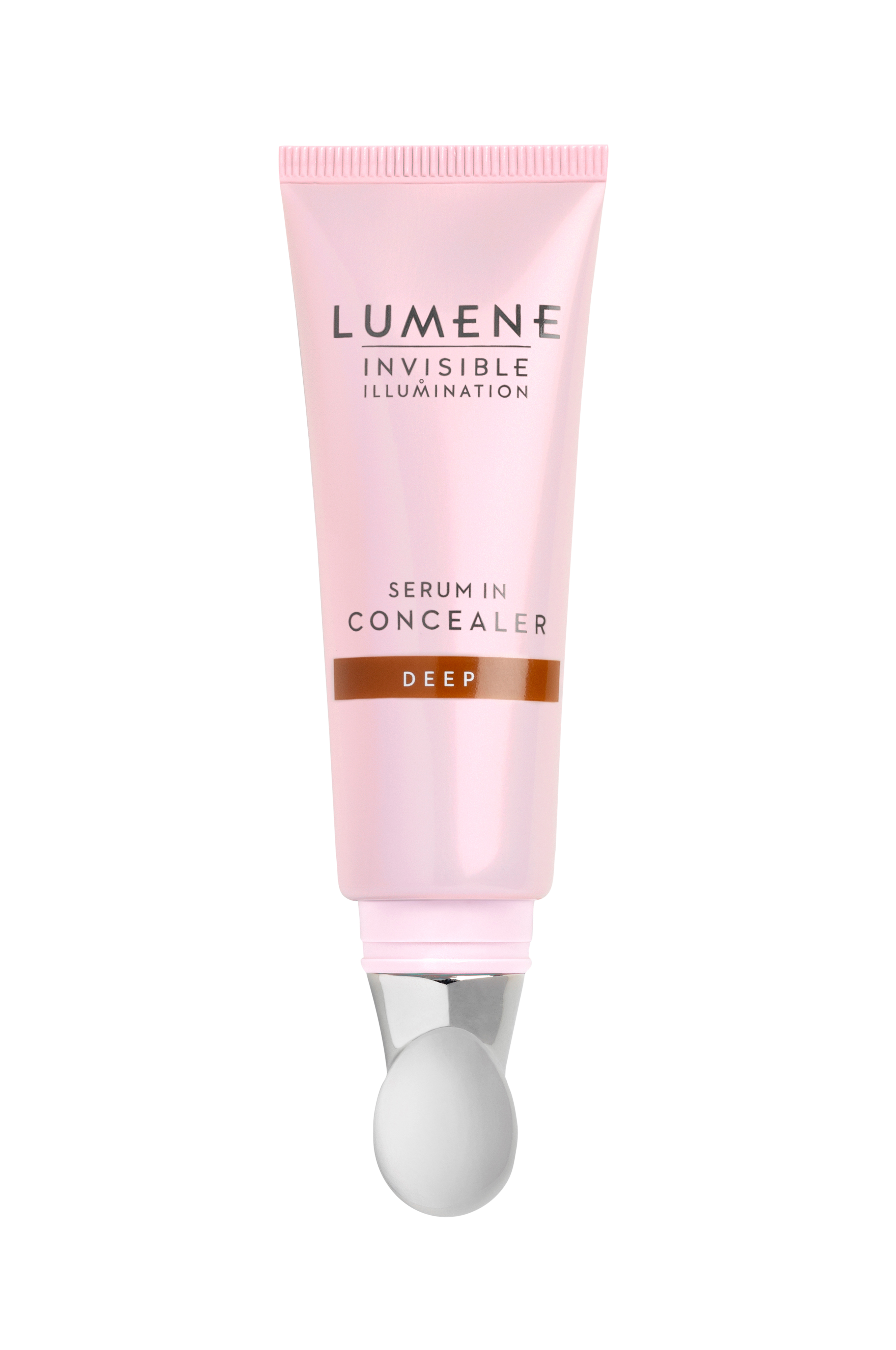 Invisible Illumination Serum in Concealer fugter, lysner og tilbyder opbyggelig dækning til området under øjnene eller andre områder, der har brug for ekstra dækning. Denne alsidige makeup-hybrid kombinerer plejen af et øjenserum og dækningen af en concealer med en let tekstur, der blender jævnt ind i huden uden at sætte sig i fine linjer i løbet af dagen. Den veganske sammensætning med hudplejende egenskaber indeholder lysende nordisk mælkeurt, fugtgivende nordiske alger og beroligende E-vitamin.