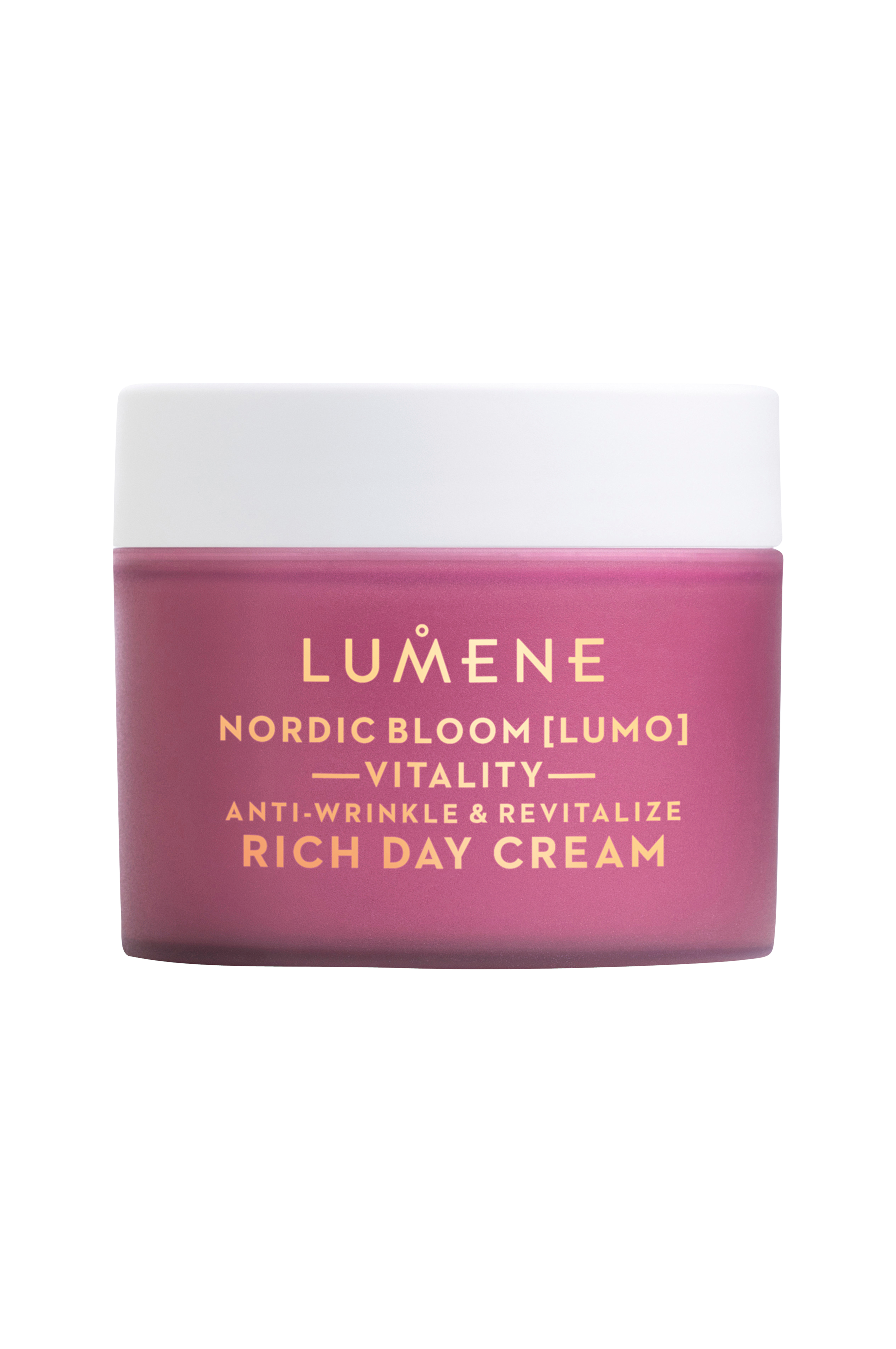 Lumene Nordic Bloom [Lumo] Vitality Anti-Wrinkle & Revitalize Day Cream plejer moden og tør hud hele dagen og hjælper med at reducere udseendet af avancerede ældningstegn: rynker, sløvhed, tørhed og tab af volumen. Denne rige creme, der er tilsat Nordic Berry Pre-Retinol og vores revitaliserende blanding med nordisk pileurt, giver intens fugt og genopretter et glattere, fyldigere og mere smidigt udseende.