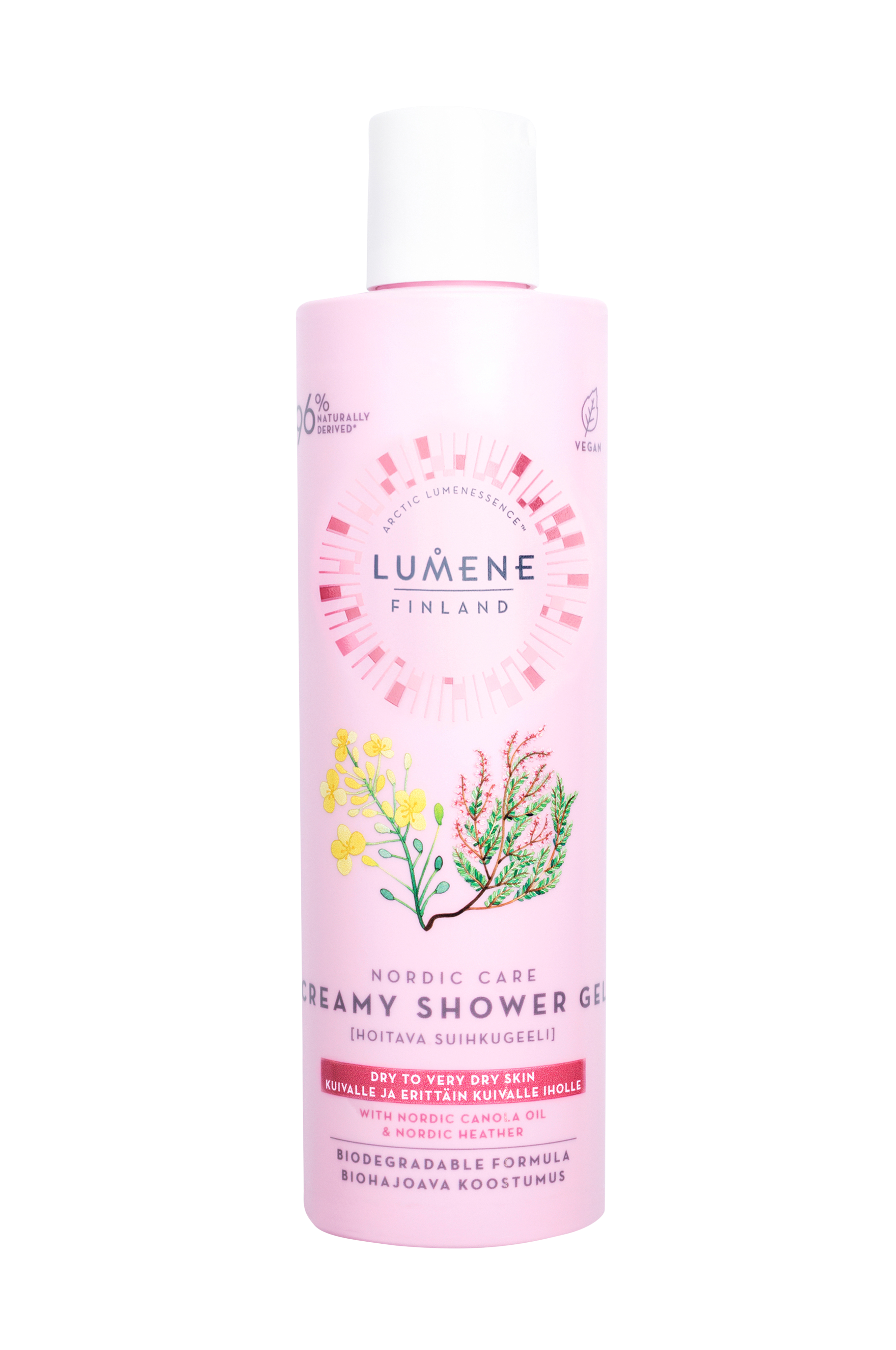 Vores milde og cremede duschgel udtørrer ikke huden, men gør, at den føles fugtet og behagelig. Duften er blød med inspiration fra den delikate nordiske lyngblomst. Formlen indeholder beskyttende nordisk rapsolie og beroligende lyngekstrakt hvilket også gør den egnet til meget tør hud. Produktet er godt for både din hud og for miljøet med 96% naturligt fremstillede ingredienser i den veganske og biologisk nedbrydelige sammensætning. Emballagen er helt genanvendelig og delvist fremstillet af genindvundet plast.