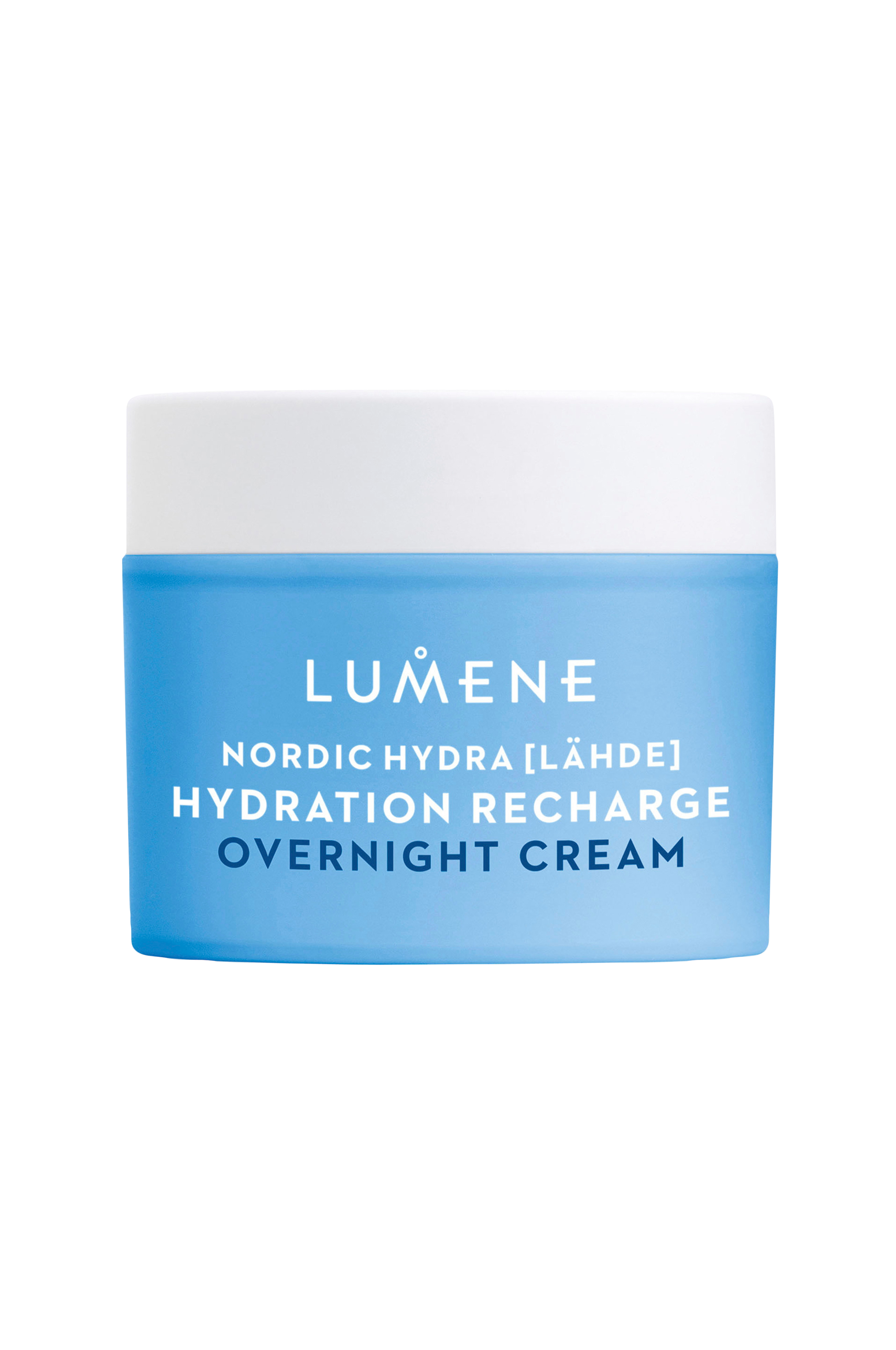 Lumene Nordic Hydra [Lähde] Hydration Recharge Overnight Cream fugter huden intenst og holder på fugten om natten, samtidig med at den supplerer dens naturlige mikrobiom. Denne rige, men lette natcreme er tilsat genopbyggende økologisk Nordic birkesaft, rent arktisk kildevand, fyldig hyaluronsyre og Nordic præ- og postbiotika fra havre, så huden ser fornyet og sund ud om morgenen. Velegnet til alle hudtyper.
