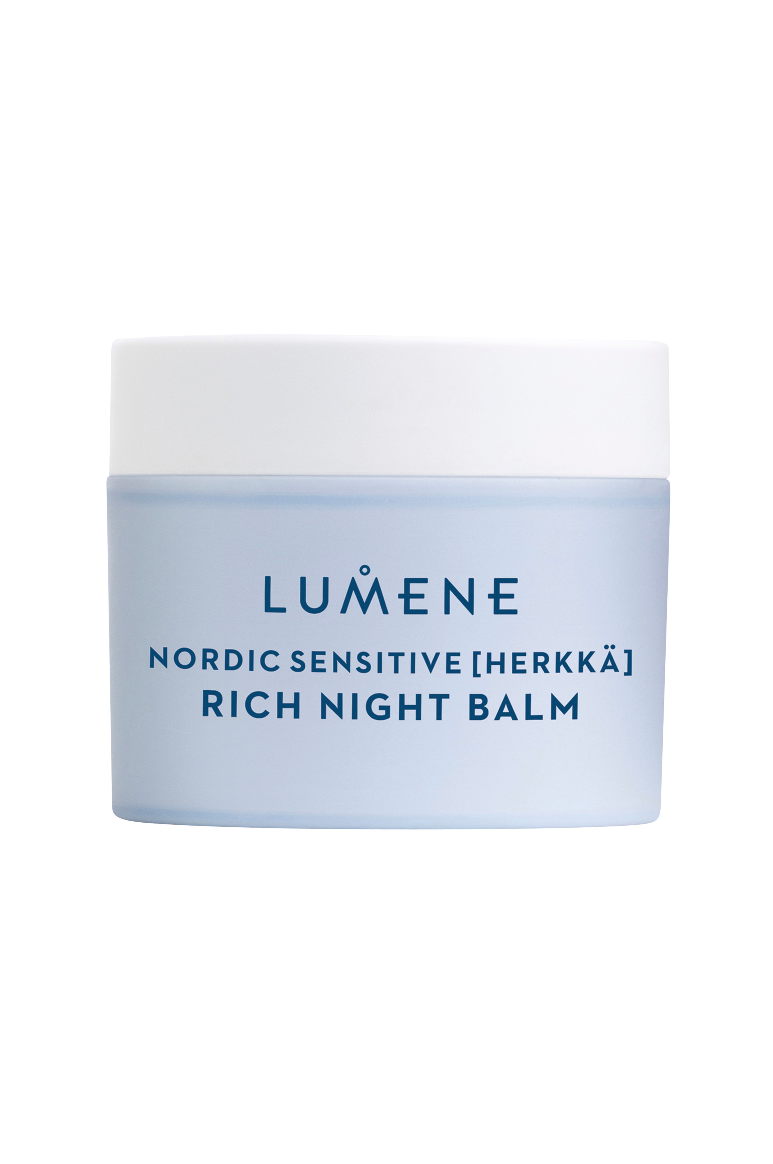 Lumene Nordic Sensitive [Herkkä] Rich Night Balm er en ceramid-boostet night creme til alle sensitive hudtyper. Denne rich formel, der er drevet af hudbarrierestøttende Nordic havreceramider og beroligende blåbærolie, beroliger øjeblikkeligt, fugter i dybden og hjælper hudbarrieren med at komme sig i løbet af night. Vågn op til en sund og rolig hud om morgenen.