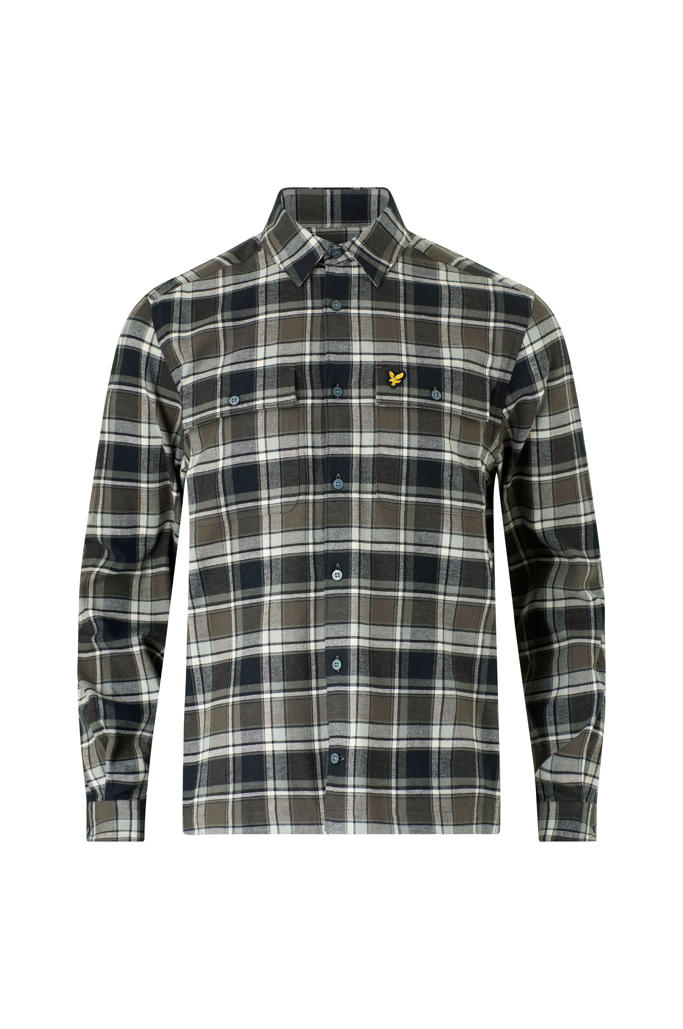 • Ternet skjorte i bomuldsflannel• Knapper foran• To brystlommer med låg• Manchet ved manchetterne
