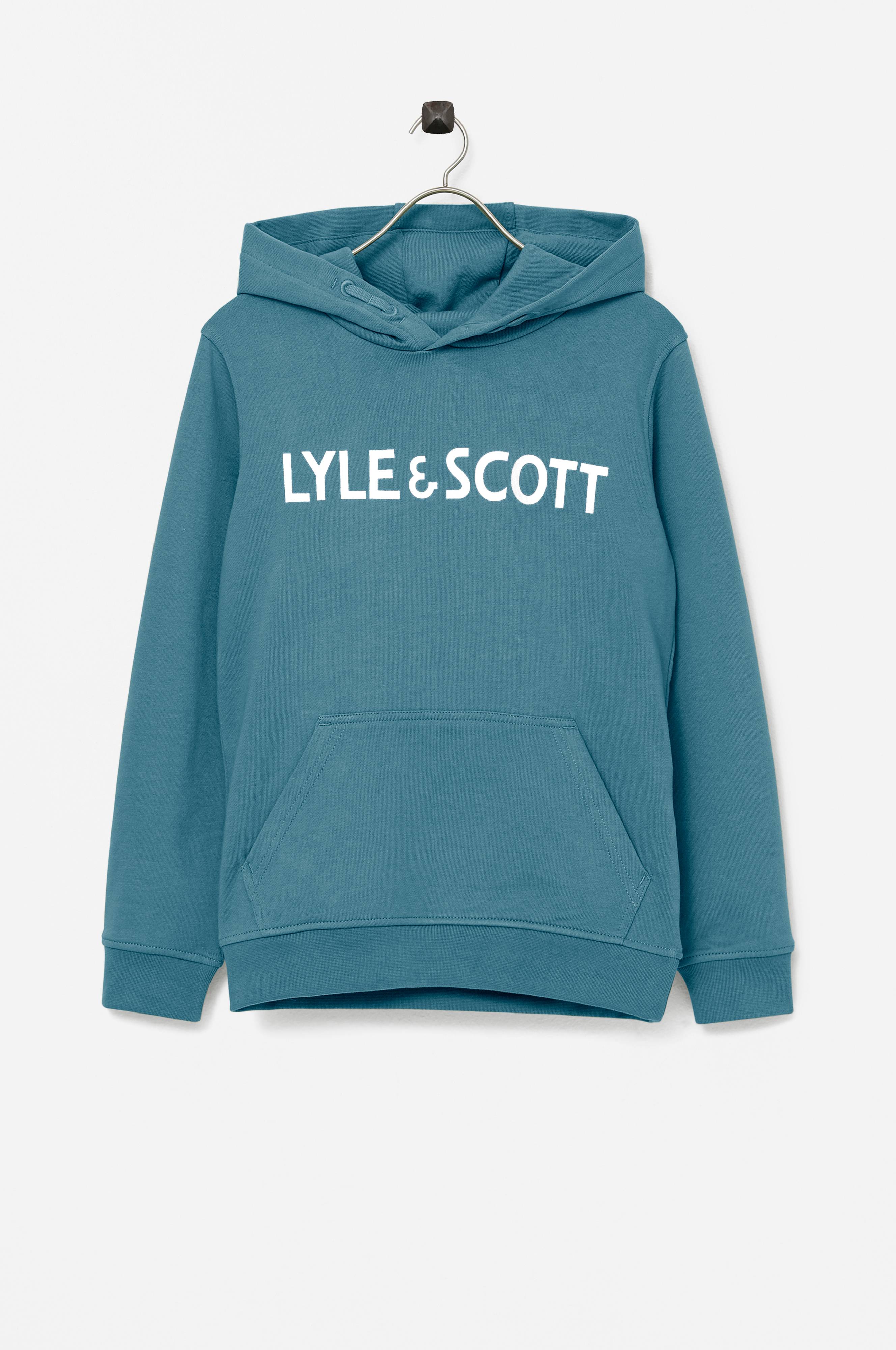 Hættetrøje Tekst LB OTH Hoodie fra Lyle & Scott med kængurulomme og logoprint foran, ribkant i ærmekant og kant forneden og hætte med snøredetalje.
