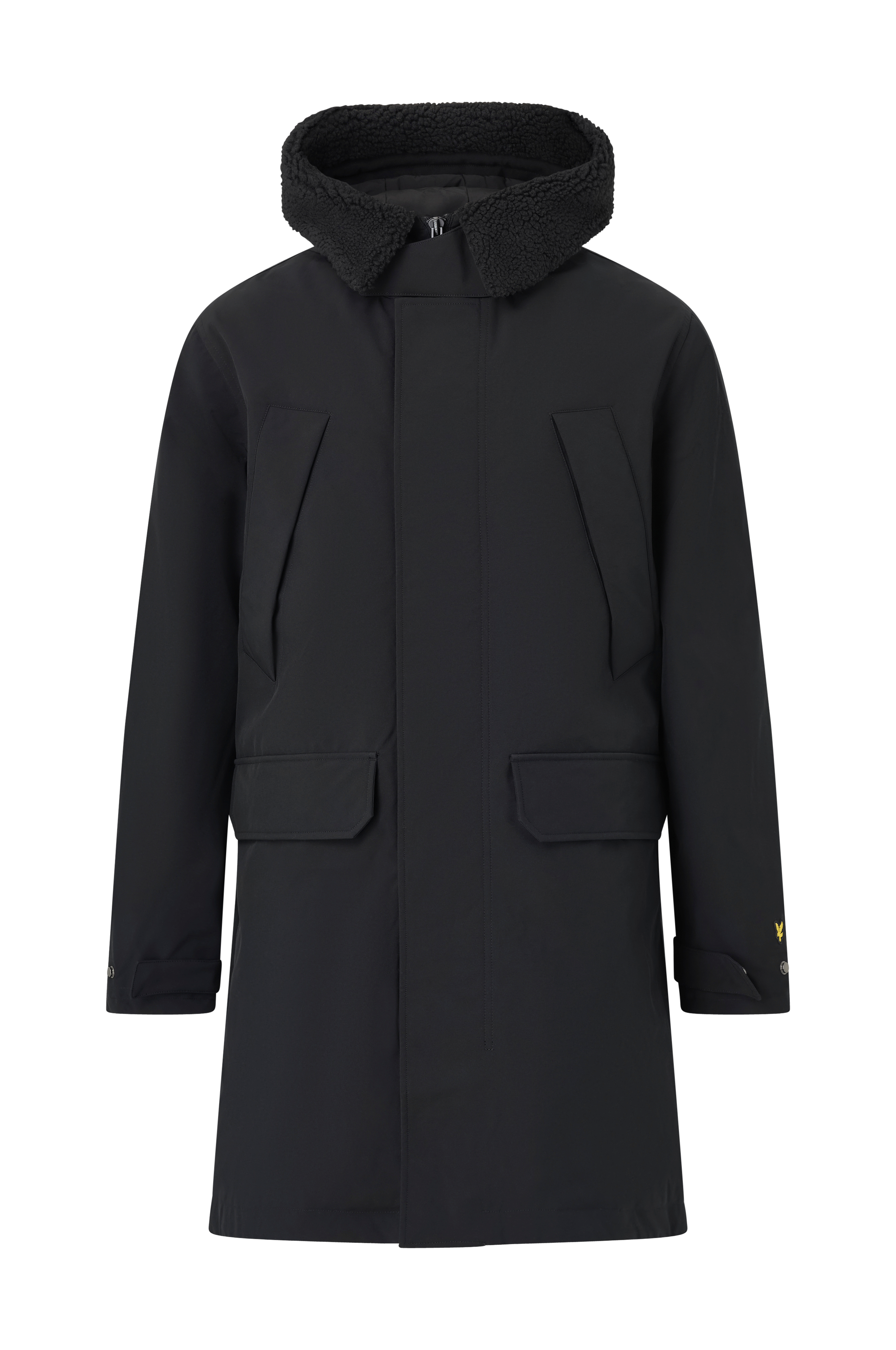 • Foret parka • Hætte med integreret krave i teddy • Lynlås foran • Beskyttende vindflap over lynlåsen med trykknapslukning • To brystlommer med trykknapslukning • To forlommer med trykknapslukning • Justérbare ærmeafslutninger • Tekstilforing • Længde: 97 cm i størrelse M