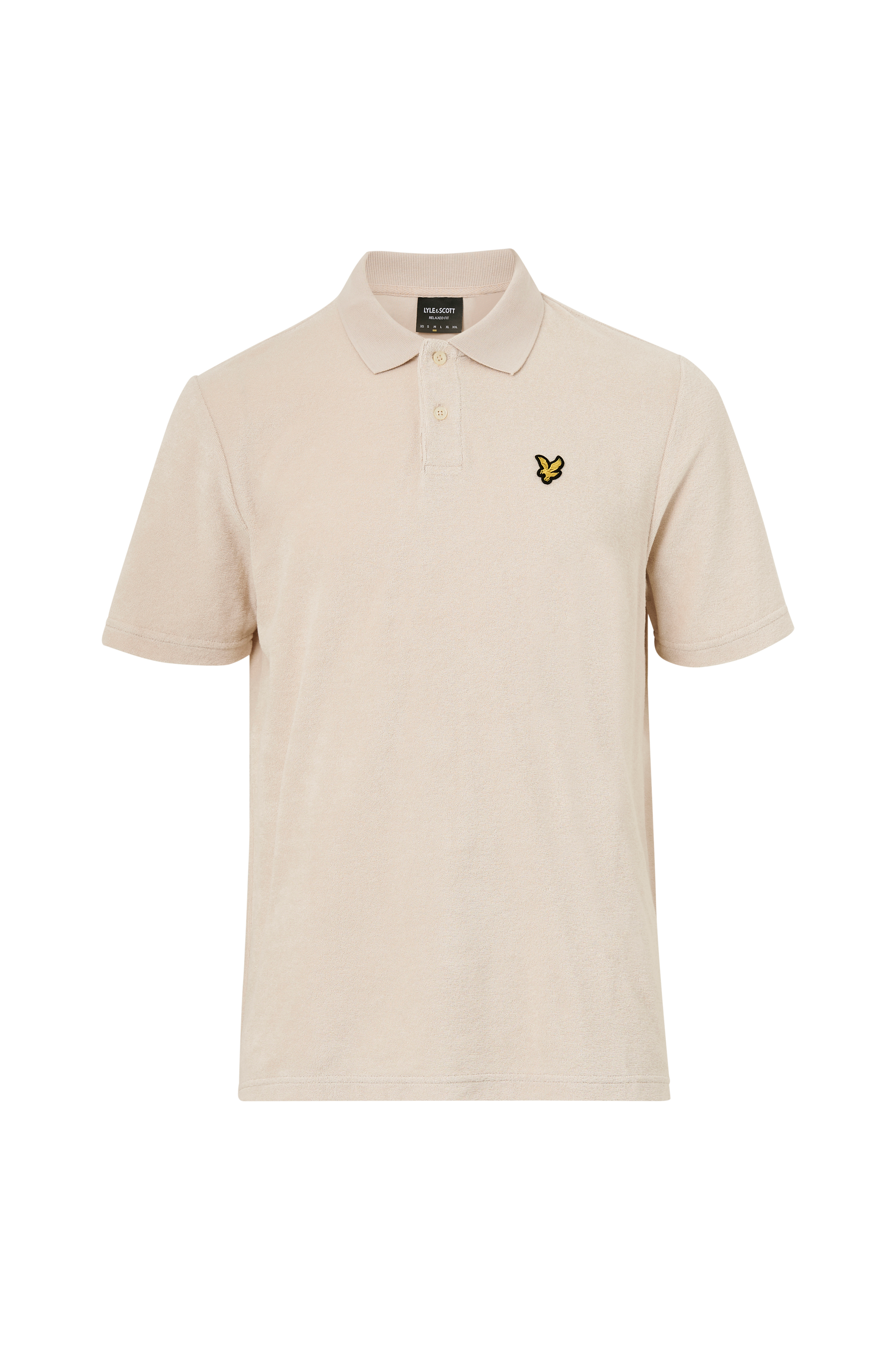 T-shirt i blødt, børstet materiale. Krave i rib og to knapper. Broderet, påsyet logo på brystet. Slids forneden i siderne.