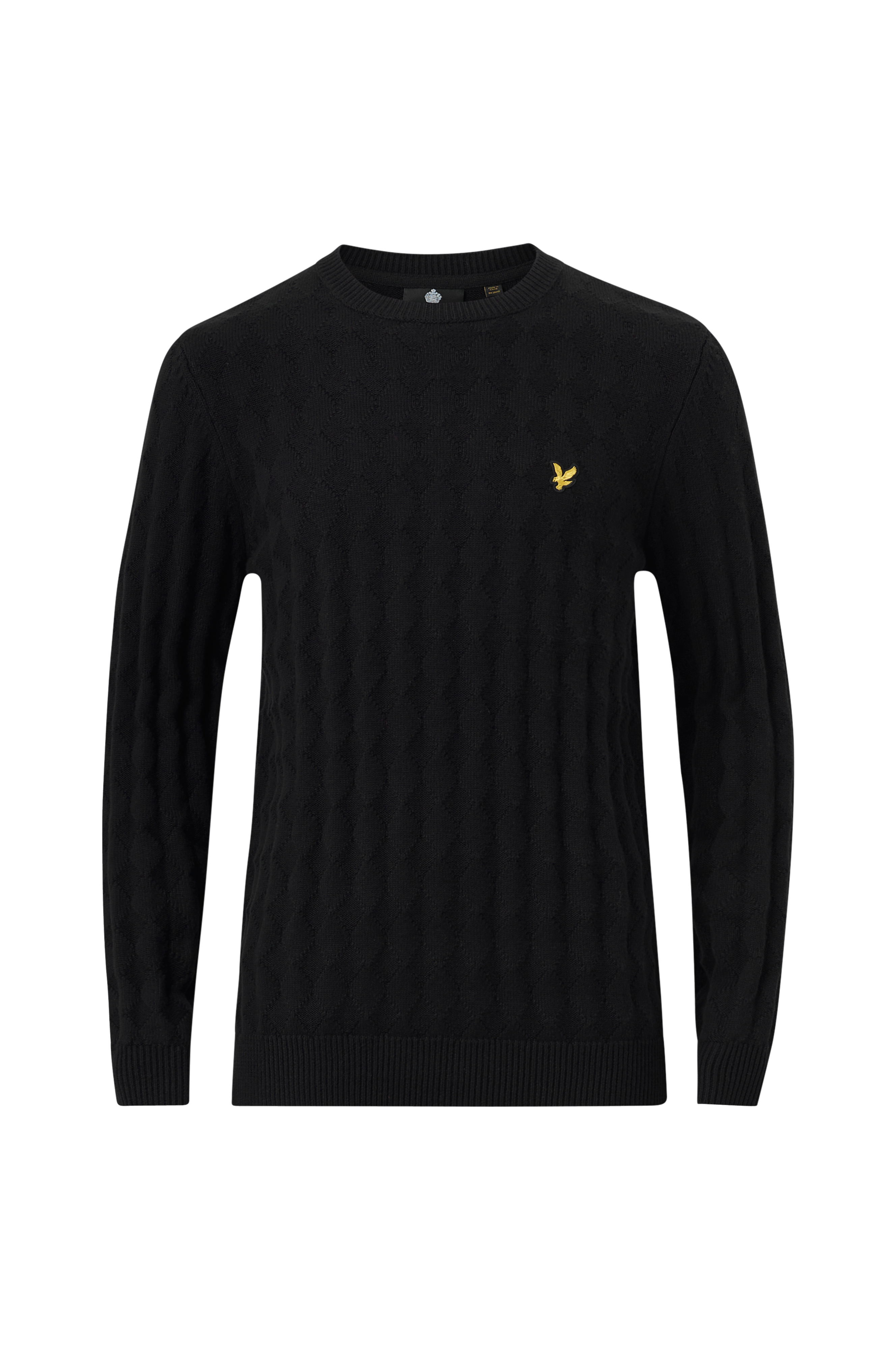 • Strikket trøje med strukturmønster• Rund, ribbet halsudskæring• Broderet, påsyet logo på brystet• Ribmanchetter ved manchetterne og ved nederste kant