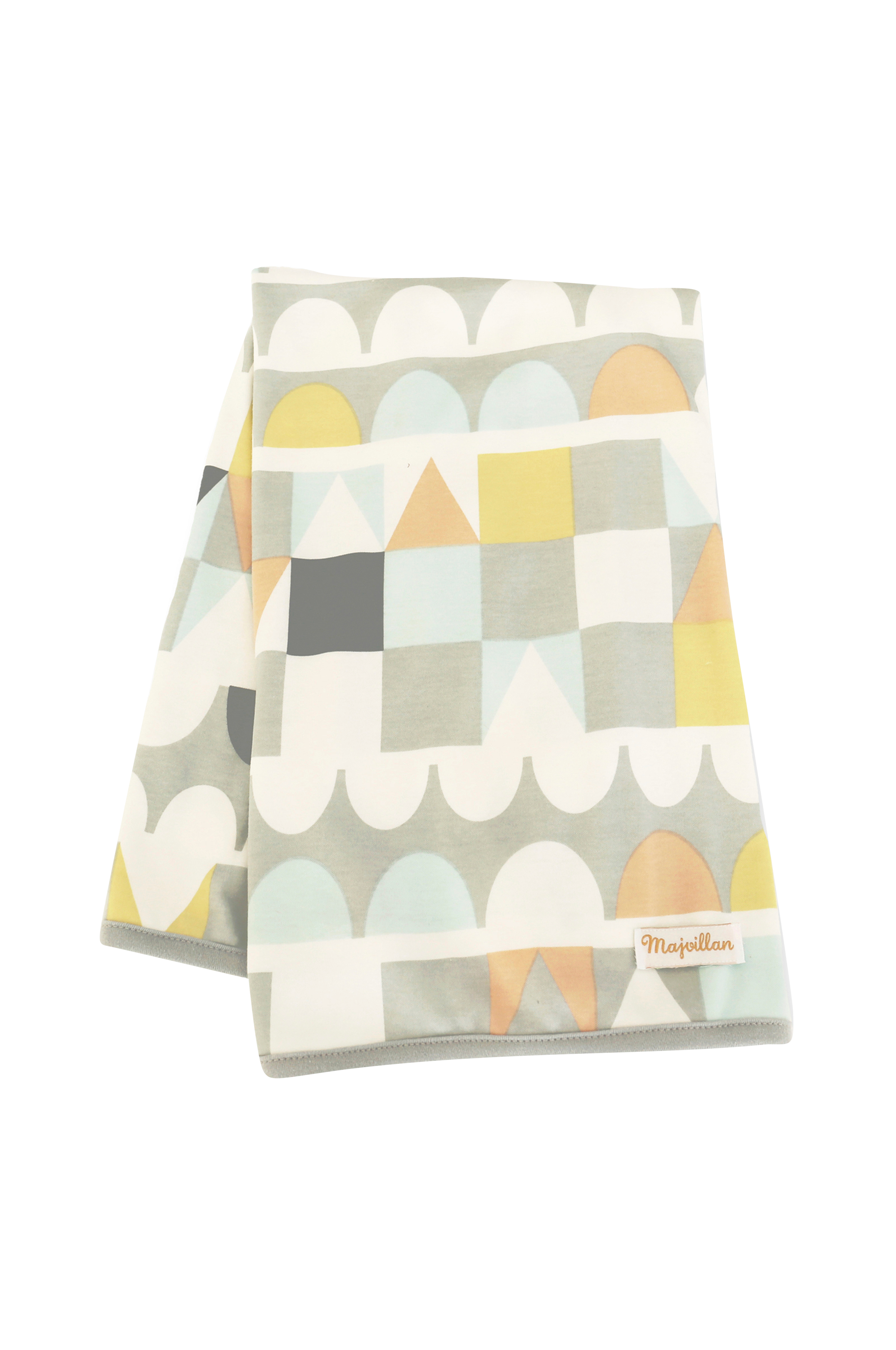 Blød jerseyplaid af 100% Gots-certificeret økologisk bomuld. Tæppet er dobbeltsyet og mønstret på begge sider. Størrelse 78x85 cm