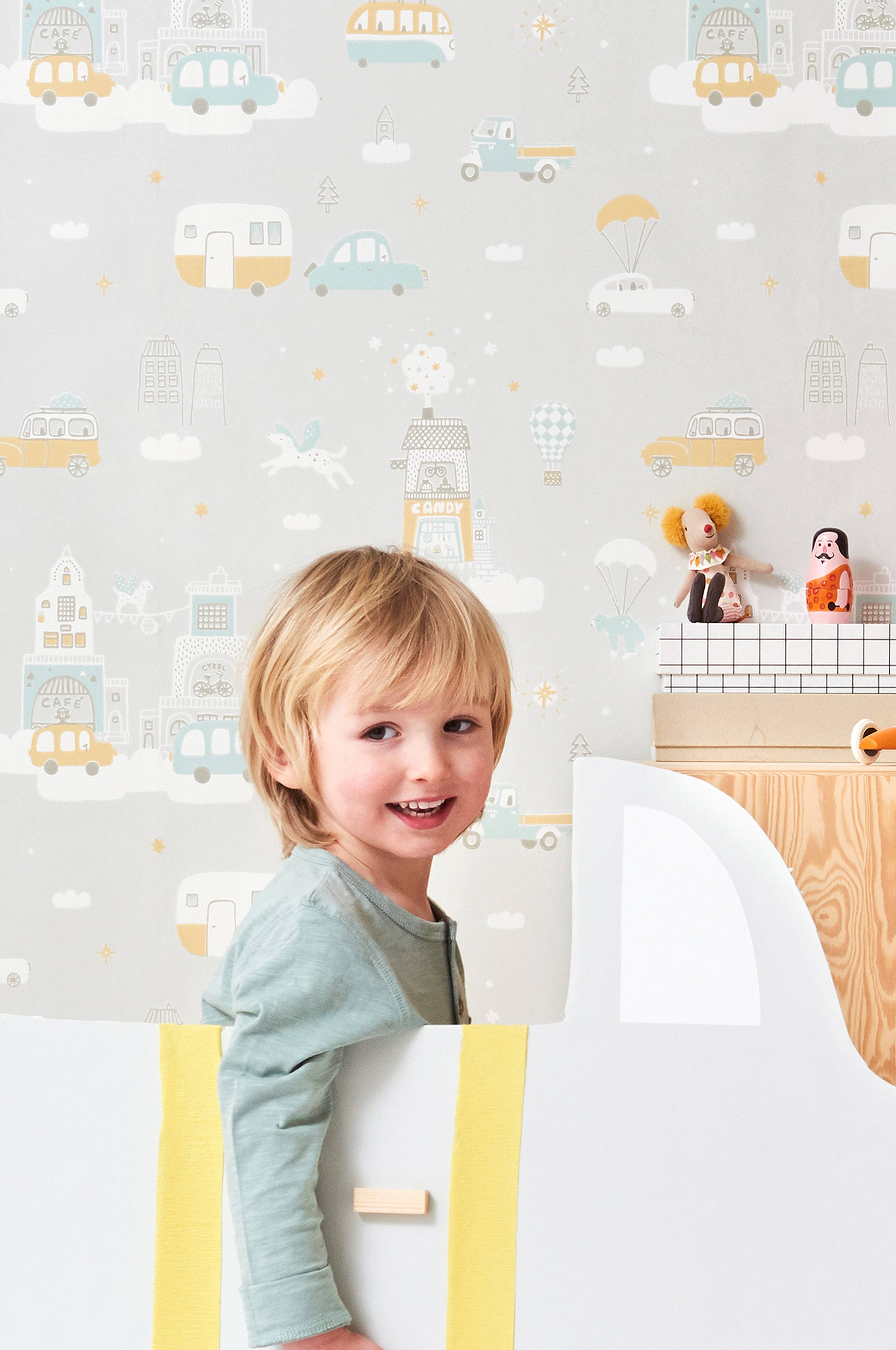 Flot non-woven tapet fra svenske Majvillan. Let at tapetsere - limes direkte på væggen. Tapetet er designet af Charlotta Sandberg. Produceret i Sverige. Miljøvenlig. Rapportstørrelse 53x53 cm. Lige mønsterrapport. Rulle 0,53x10,05 m.