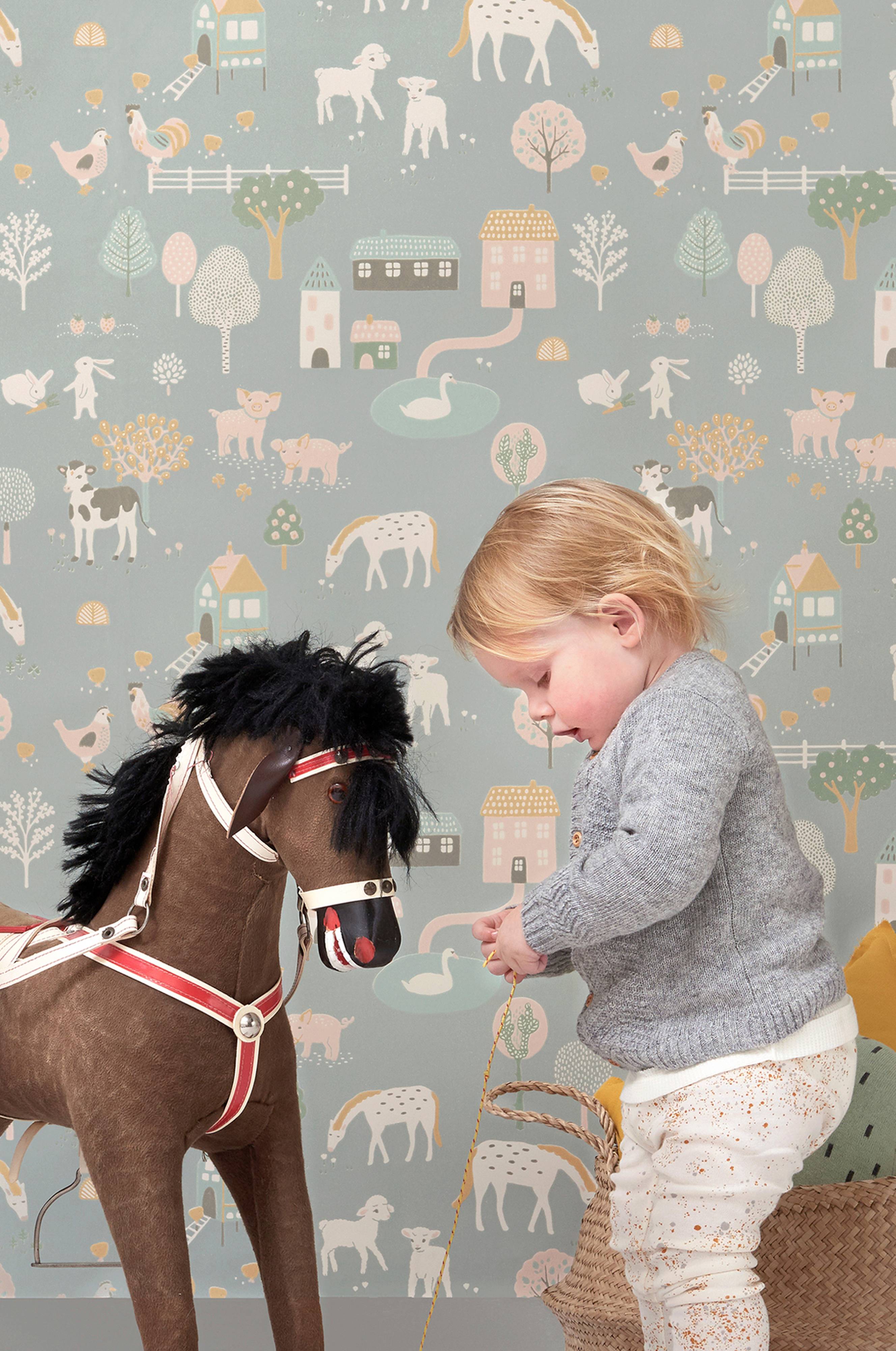 Flot non-woven tapet fra svenske Majvillan. Let at tapetsere - limes direkte på væggen. Tapetet er designet af Charlotta Sandberg. Produceret i Sverige. Miljøvenlig. Rapportstørrelse 53x53 cm. Lige mønsterrapport. Rulle 0,53x10,05 m.
