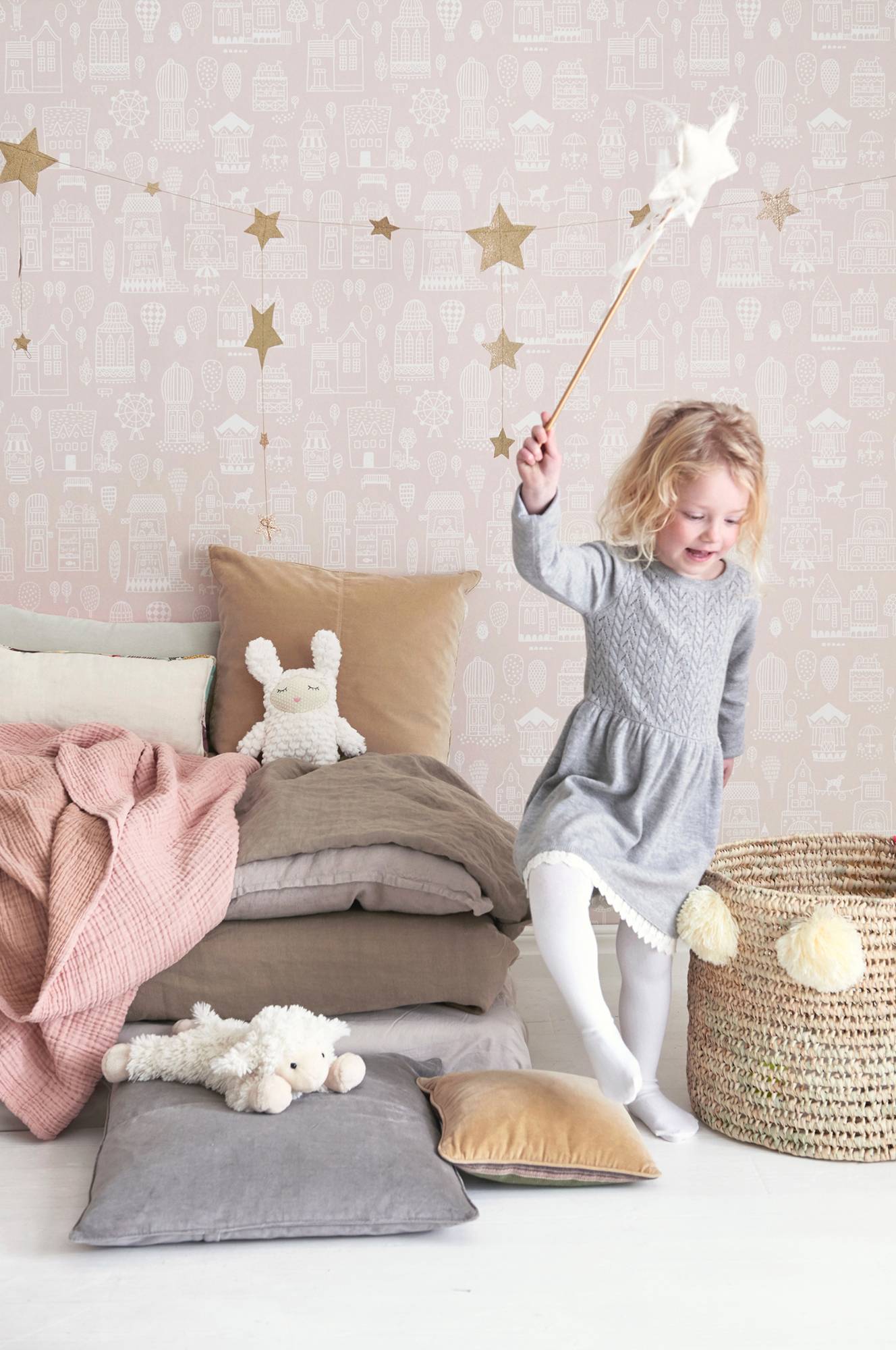 Smukt non-woven tapet fra svenske Majvillan. Let at tapetsere Lim direkte på væggen. Tapetet er designet af Charlotta Sandberg. Produceret i Sverige. Miljøvenligt. Rapportstørrelse 53x53cm. Lige mønsterrapport. Rulle 0,53x10,05 m.