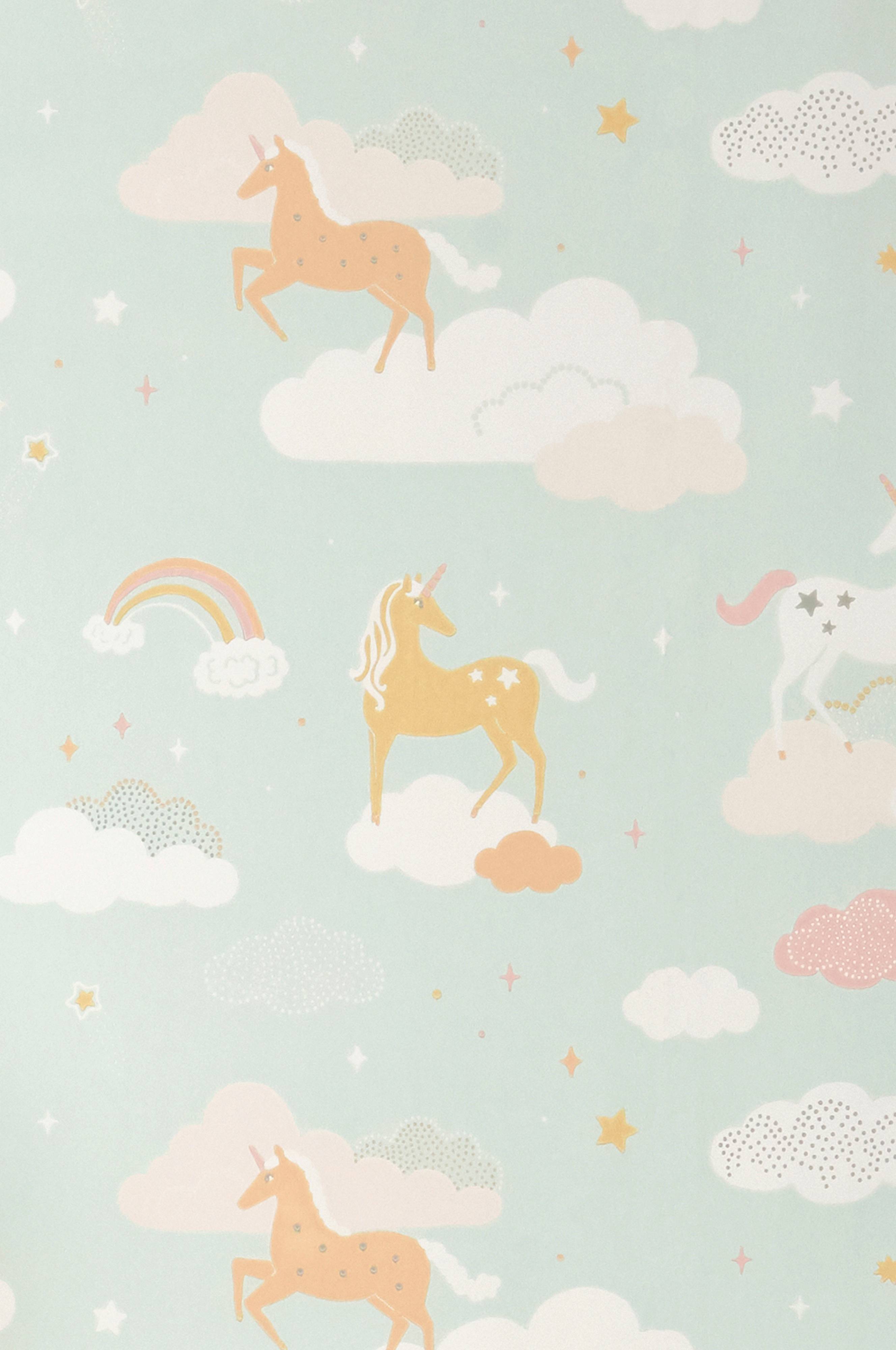 Tapet Rainbow treasure Bubblegum turqoise bestiller du på varenr. 1557391-03-0. Tapetet leveres i rulle med længde 10,05 m og bredde 53 cm.