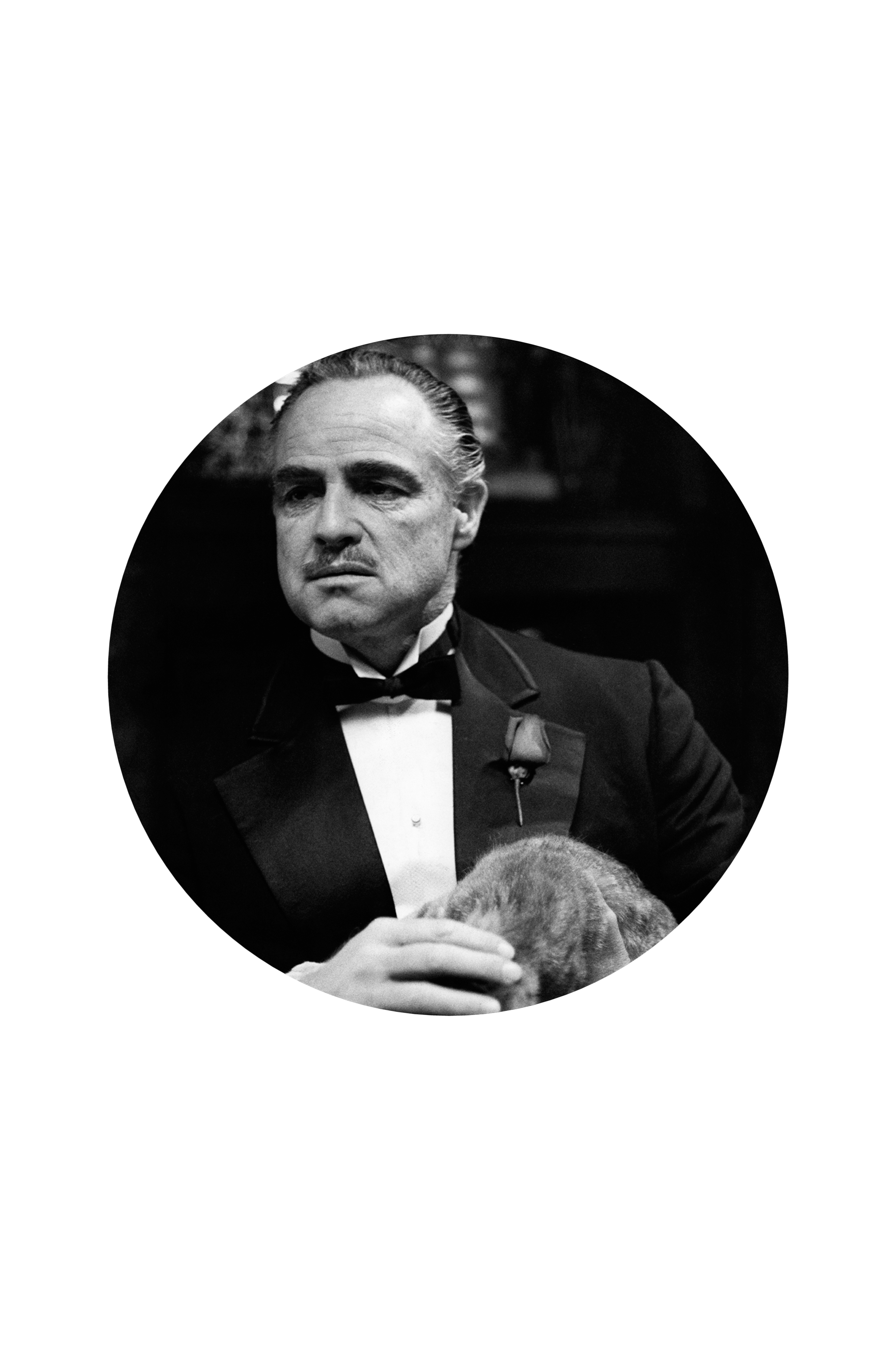 Billede Marlon Brando 2 fra Malerifabrikken. Print på rund MDF-plade. Når billedet er hængt op, gør profilen på pladen at fronten "svæver" ca. 0,5 cm fra væggen.