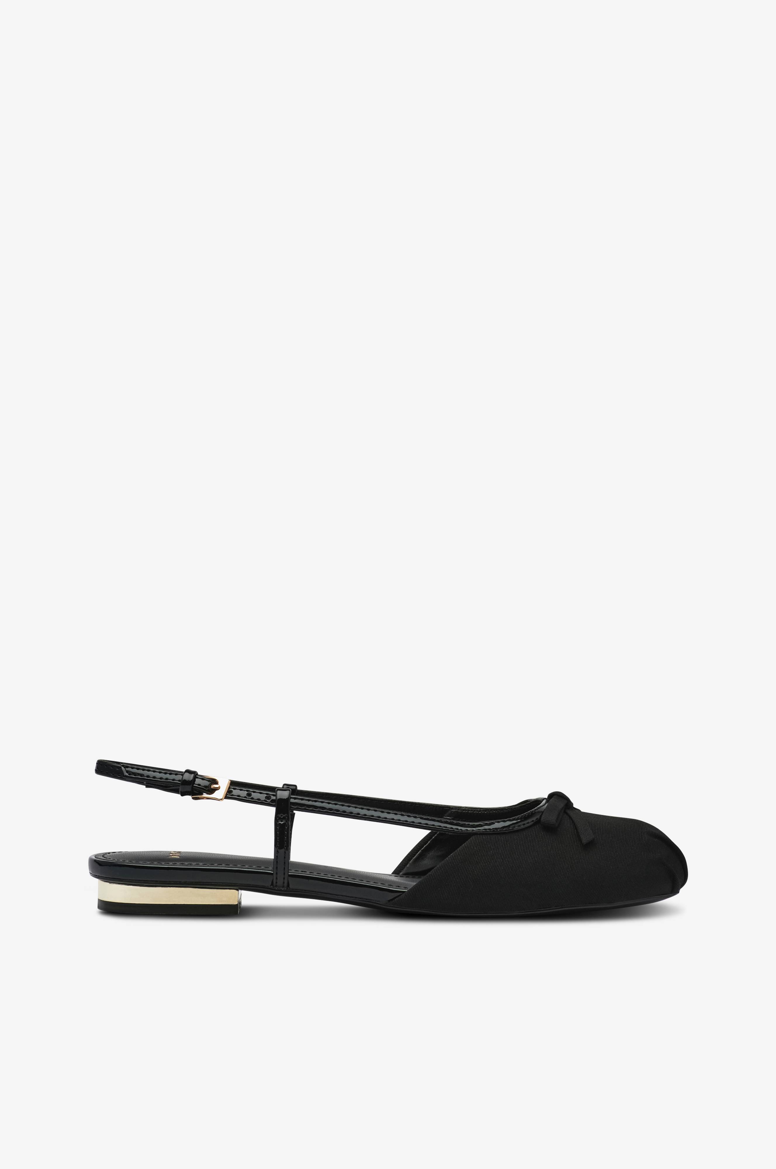 • Ballerinasko i tekstil• Dekorativ sløjfedetalje på foden• Patent hælrem med guldfarvet metallukning• Guldfarvet, lav hæl