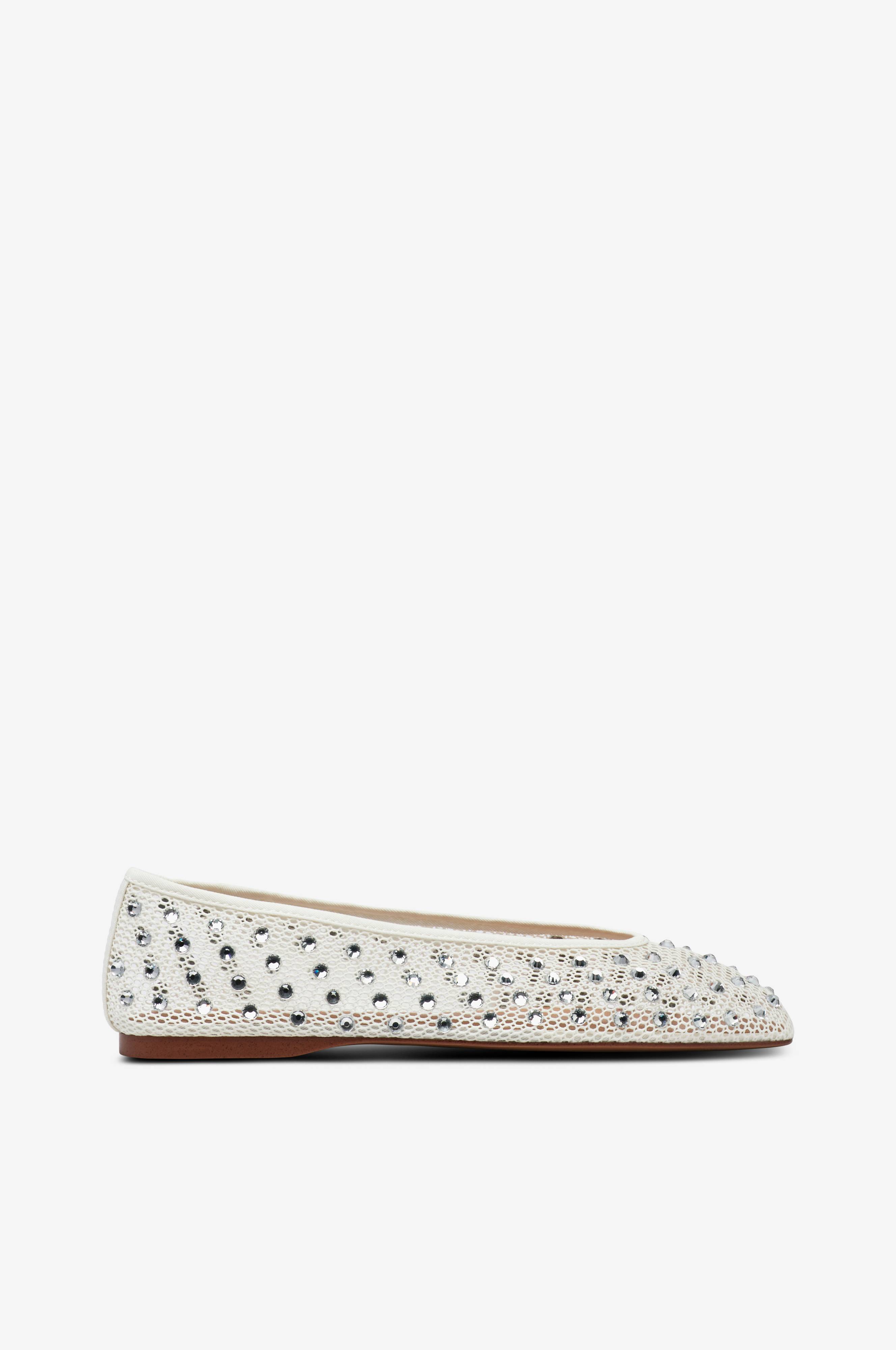 • Med netmønster model i tekstil• Glitrende rhinstene hele vejen rundt• Lige tåform• Blød polstret indersål