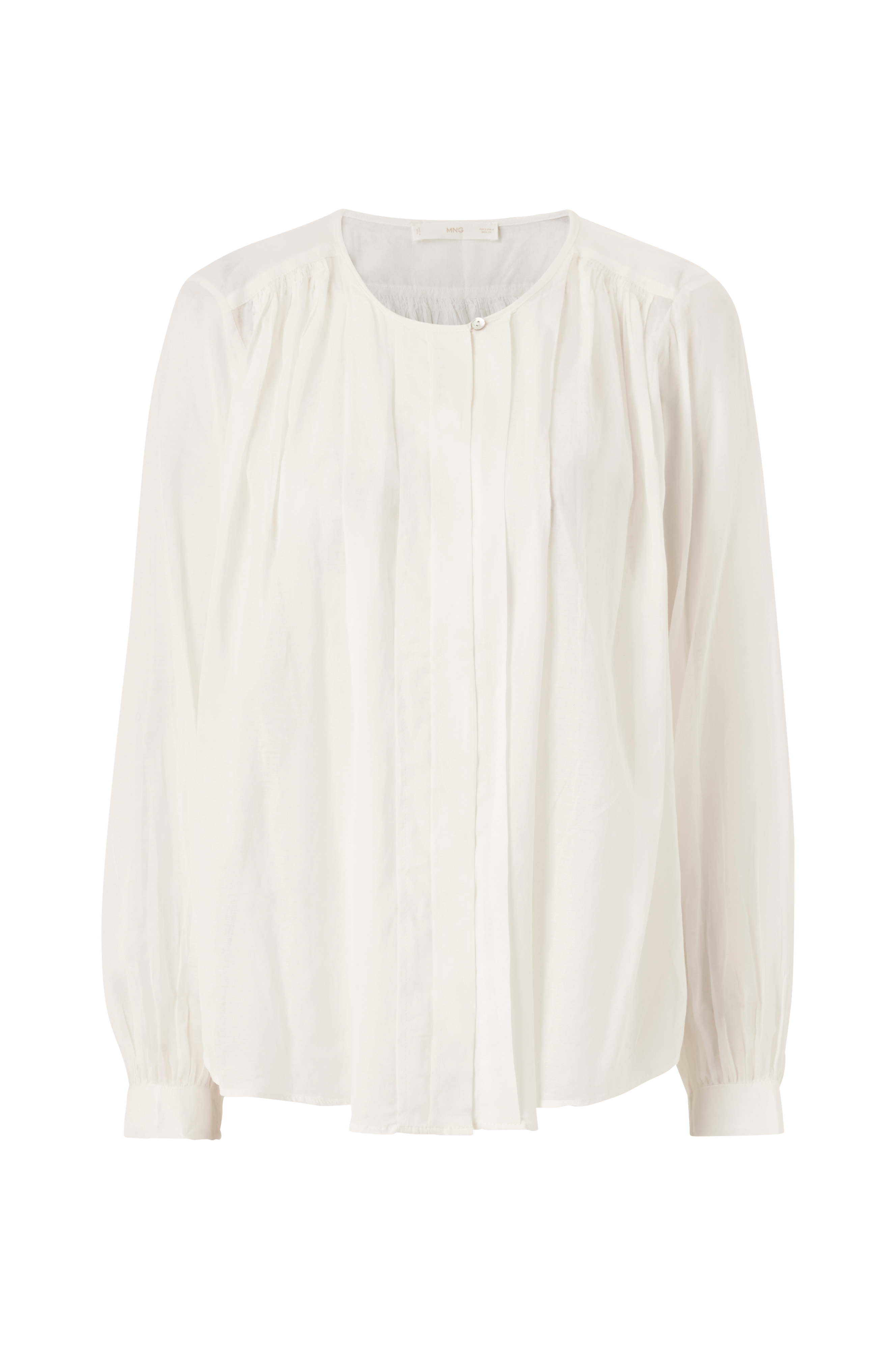 • Ekstra bred model• Samling på bærekraven• Skjult knapstolpe foran med syet i folder lægge på siderne• Langt ærme med tynd manchet