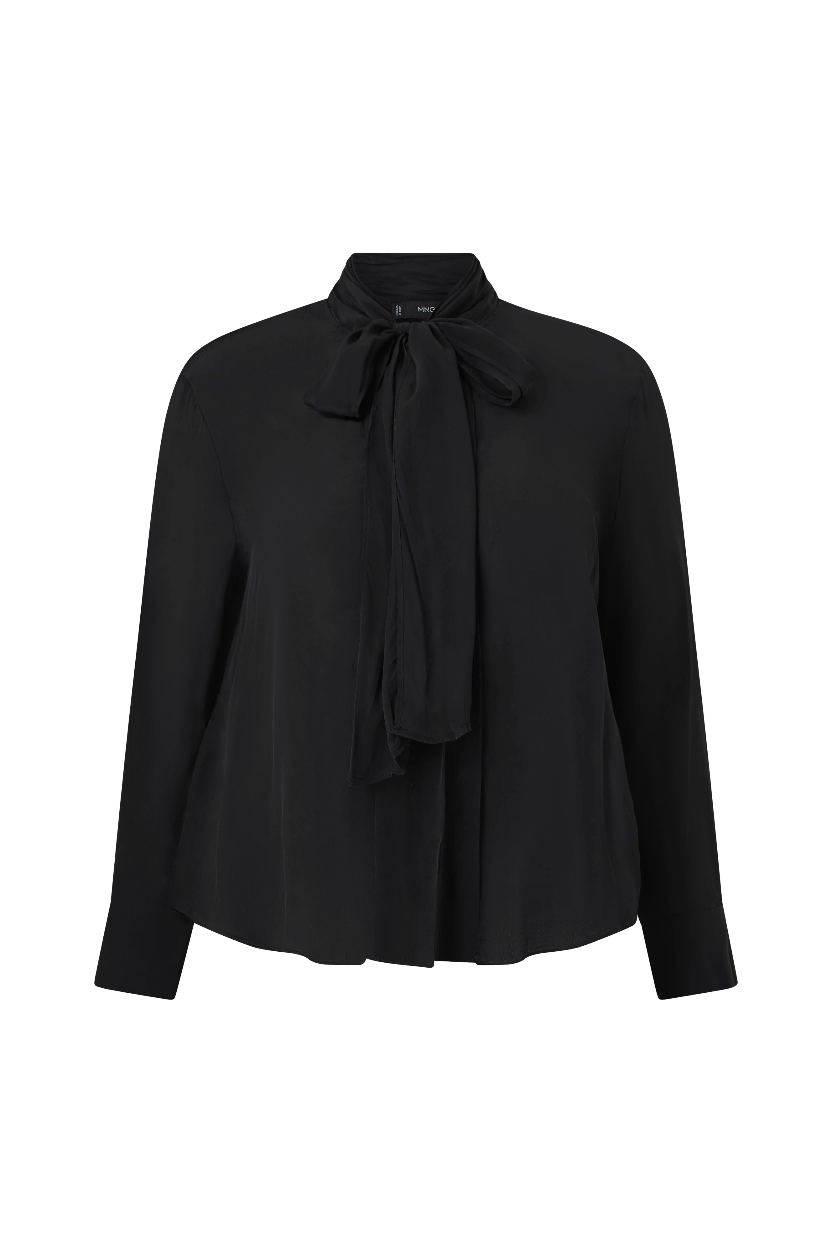 • Langærmet bluse i materiale• Dekorativt bindebånd rundt om halsen• Afrundet halsudskæring• Knapstolpe foran med skjulte knapper• Lagdelt design foran• Manchet med knap ved manchetterne• Stor størrelse