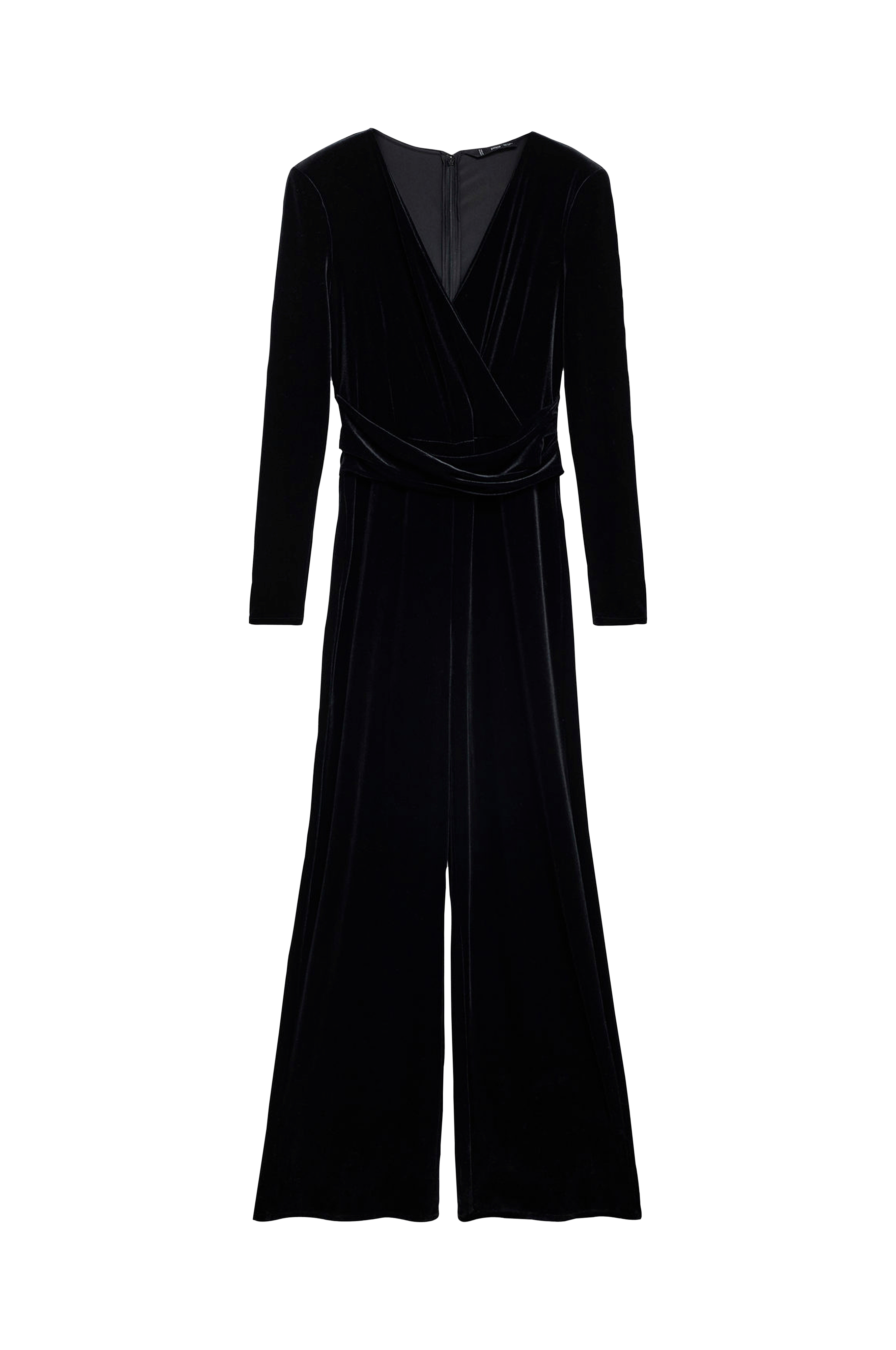 • Buksekjole i fløjl• Slå-om design på toppen• Lynlås på ryggen• Langt ærme• Draperet detalje foran• Brede ben• Store størrelser