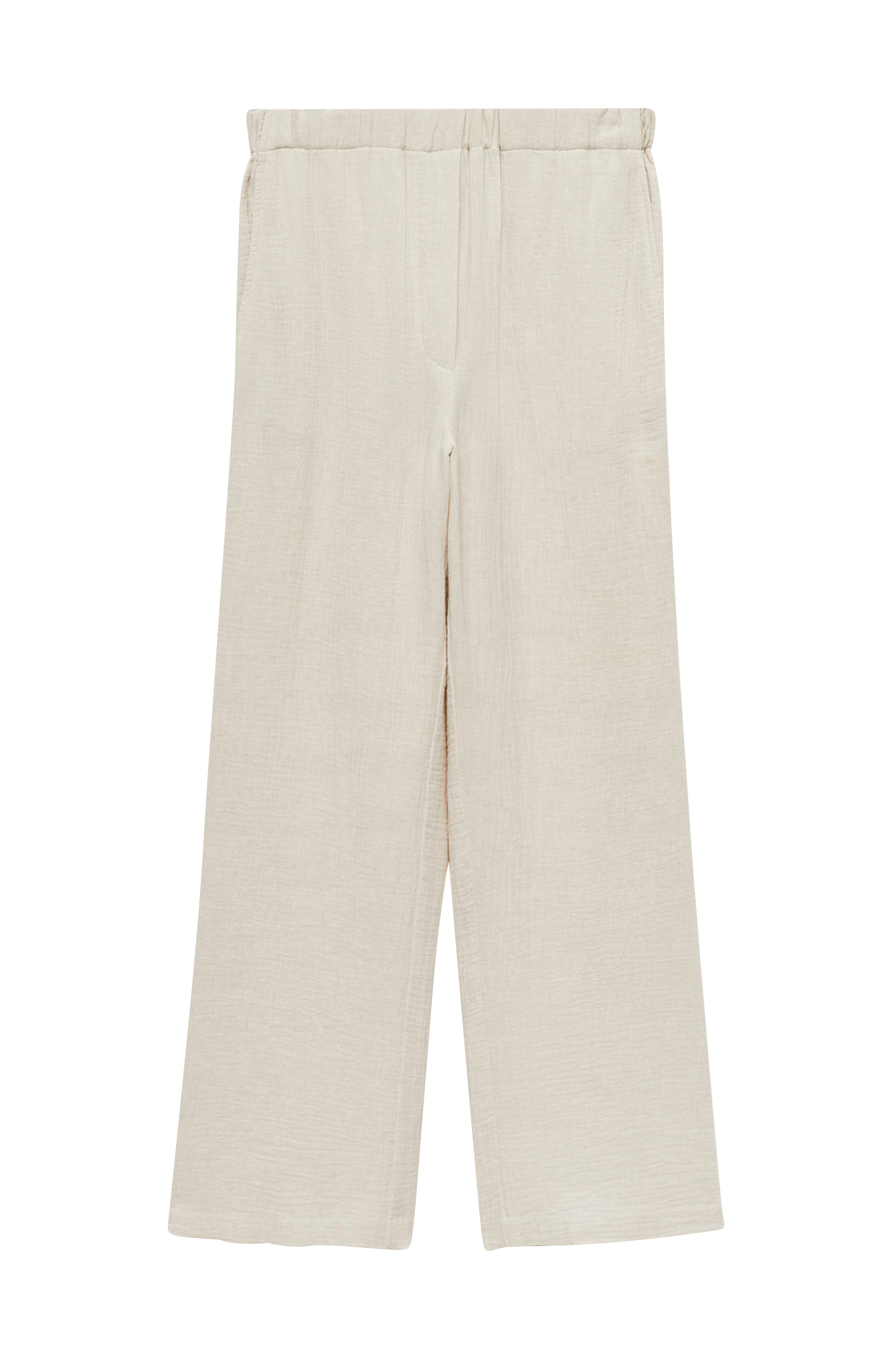 • Mønstervævet model med brede, lige ben• Linning med indlagt elastik• Skrå lommer foran• Snydegylp• Indre benlængde: 85 cm i størrelse L