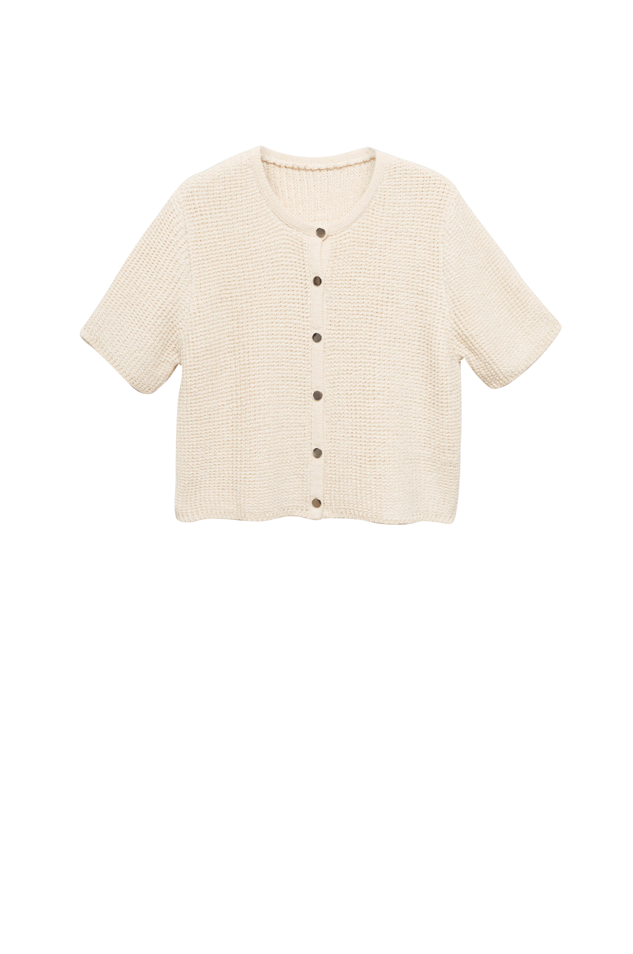 • Strukturstrikket cardigan med glimmertråd• Rund hals• Kort ærme• Metalknapper
