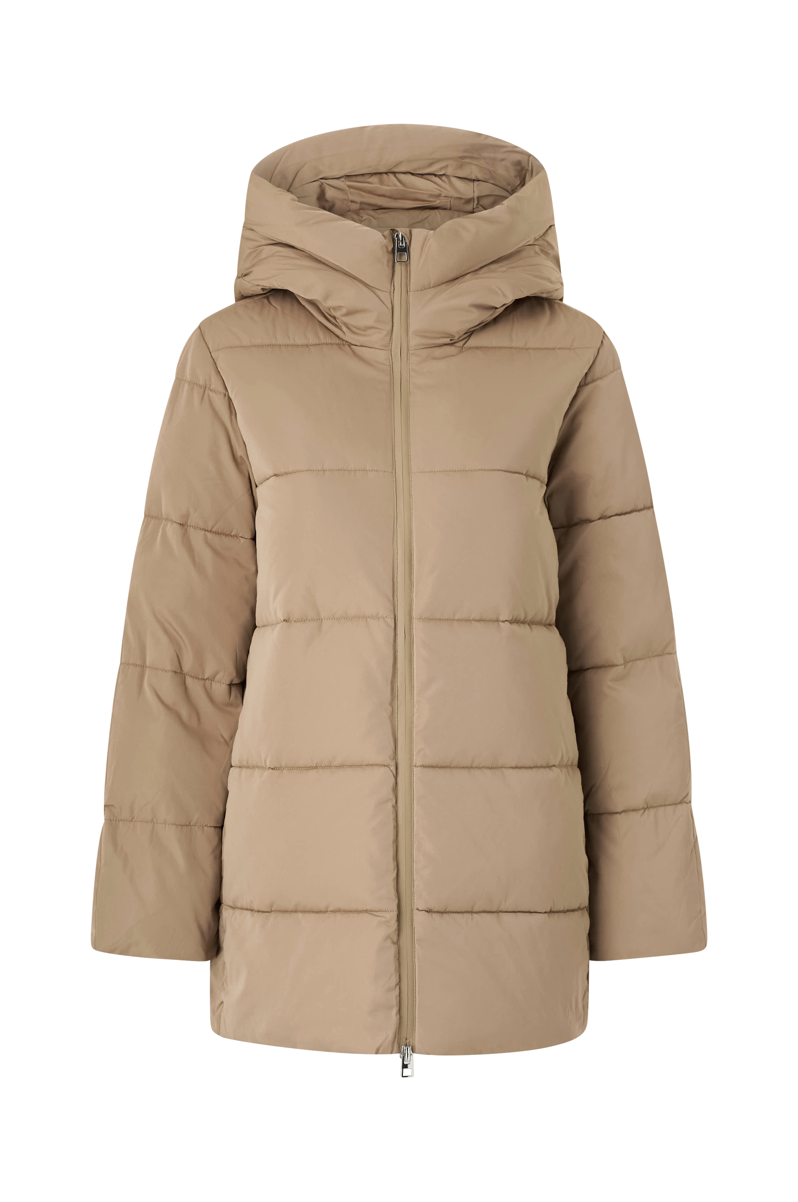 • Quiltet, foret frakke med vandafvisende ydermateriale • Fast hætte • To-vejs lynlås • Sidelommer med skjult lynlås • Ribmanchetter ved manchetterne • Længde: 81 cm i størrelse 36