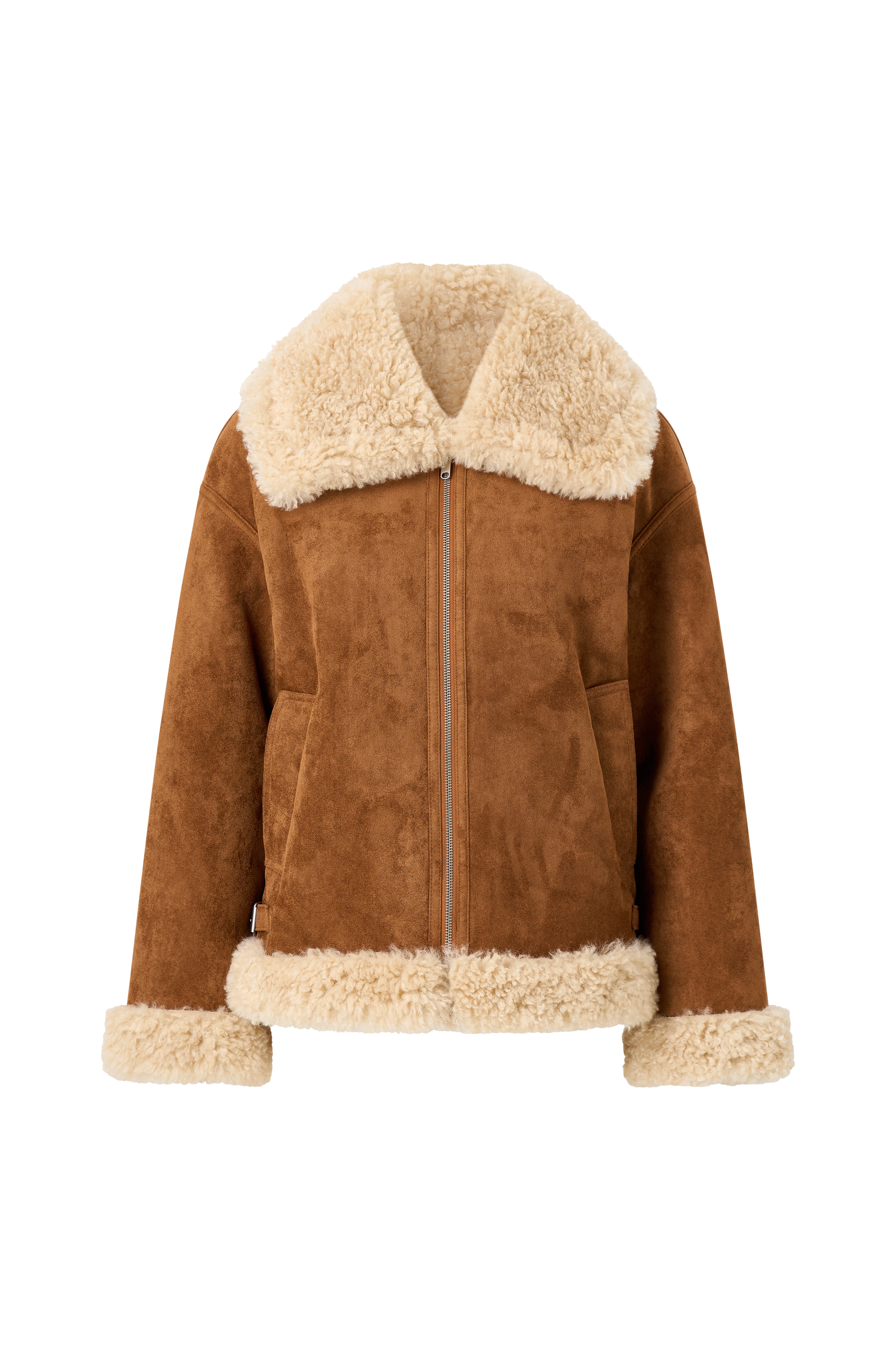 • Jakke i ruskindsimitation med krave, for og ærmeafslutning i teddy• Lynlåslukning• To sidelommer• Justérbare stropper nede i siderne• Længde: 67 cm i størrelse S