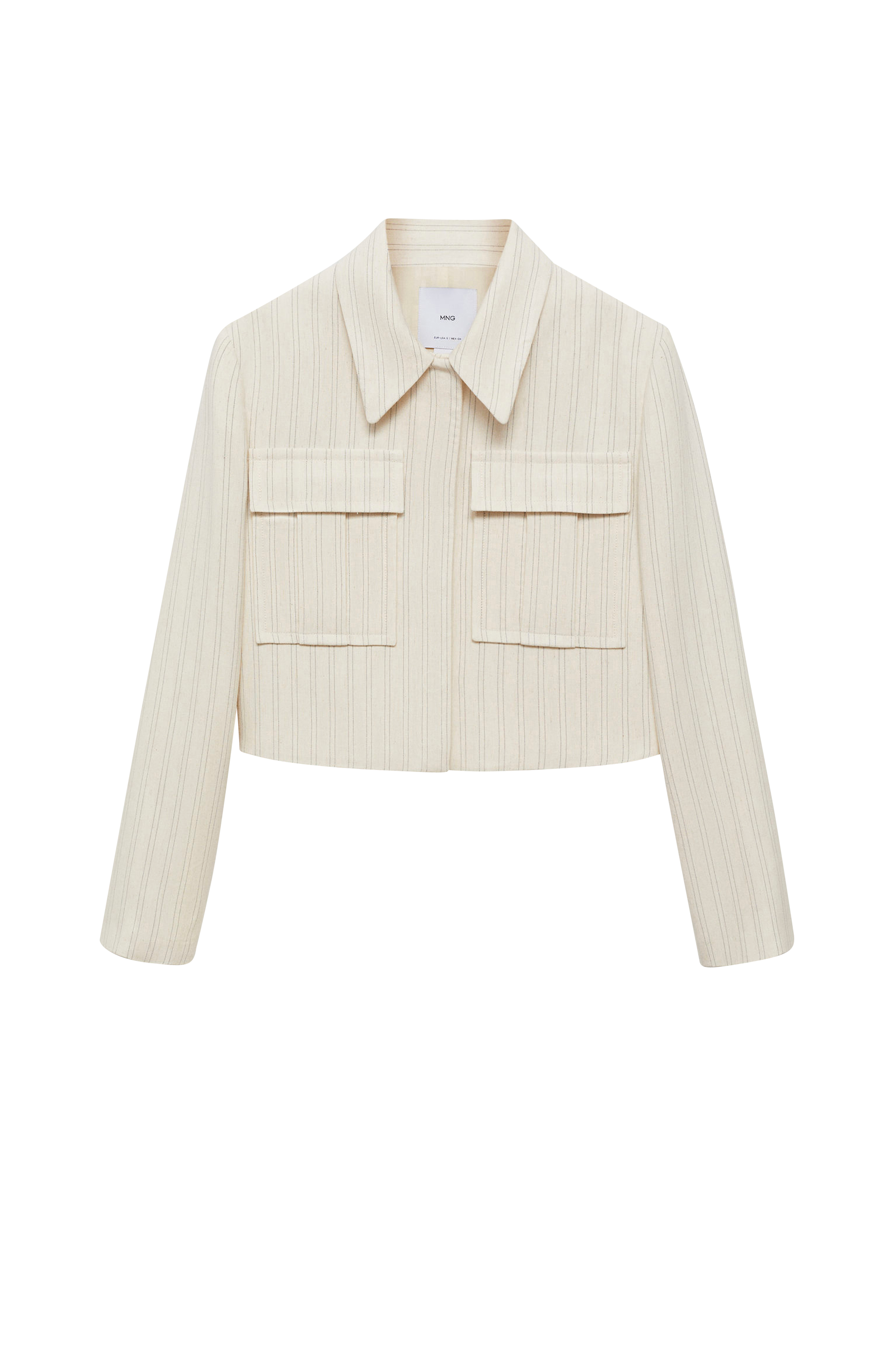 • Kort, lige model• Skjult knapstolpe foran• Store brystlommer med låg• Langt ærme• Skulderpuder• Foret• Længde: 45 cm i størrelse S