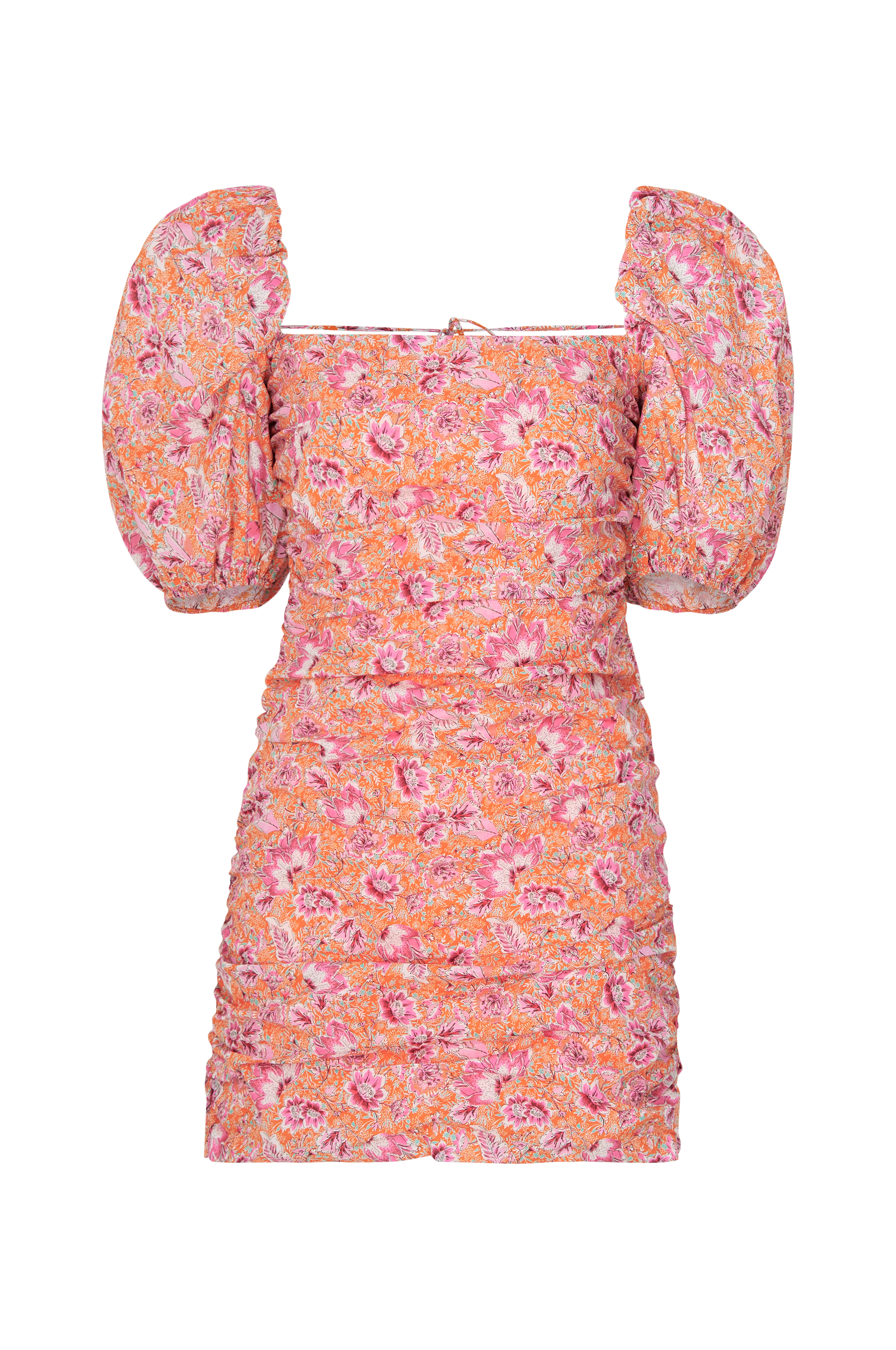 • Kort, figursyet model• Draperet design med elastisk bånd i siderne• Korte ballonærmer• Firkantet halsudskæring• Åben ryg med snøring• Foret• Længde: 77 cm i størrelse S