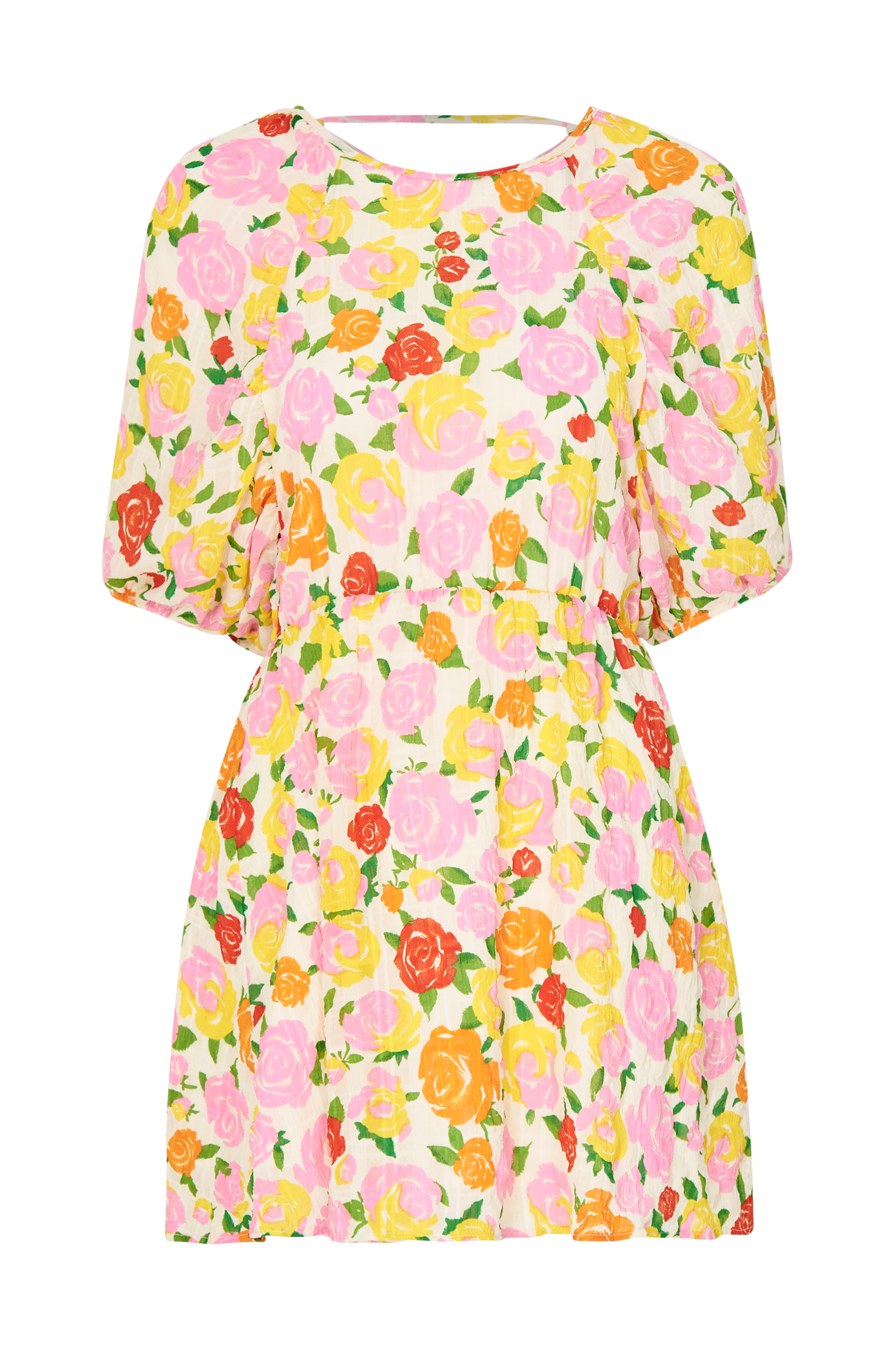 • Kort kjole med svaj• Åben ryg med krydsende bindebånd• Halvlange ballonærmer med elastiske manchetter• Elastisk talje• Tynd kvalitet med struktur• For nederst• Længde: 85 cm i størrelse S