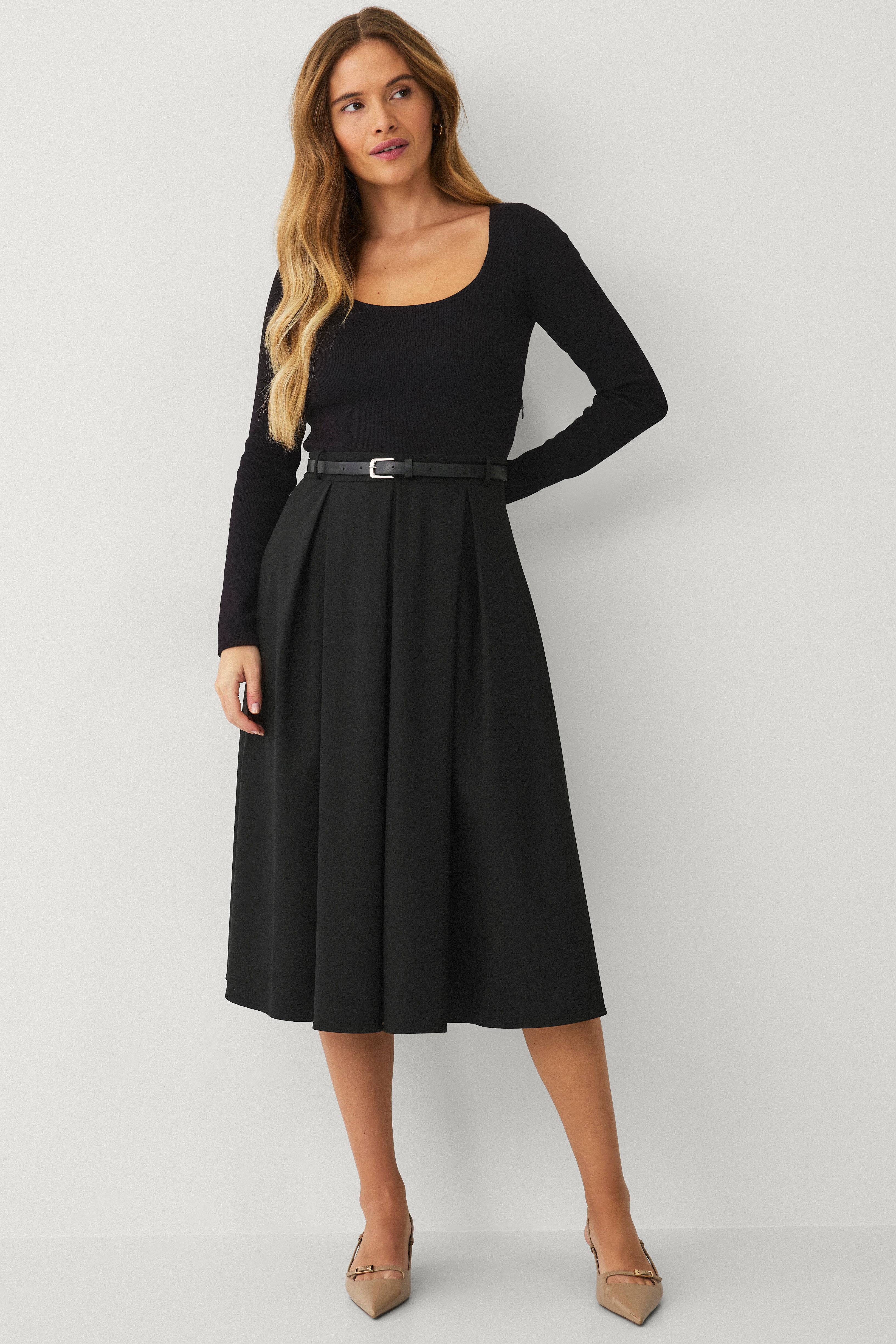 • Langærmet øvre del i ribbet, elastisk jersey• Glatvævet, elastisk nederdel• Rund, dyb halsudskæring• Tyndt, aftageligt bælte• Lynlås i den ene side• Længde: 118 cm i størrelse 36