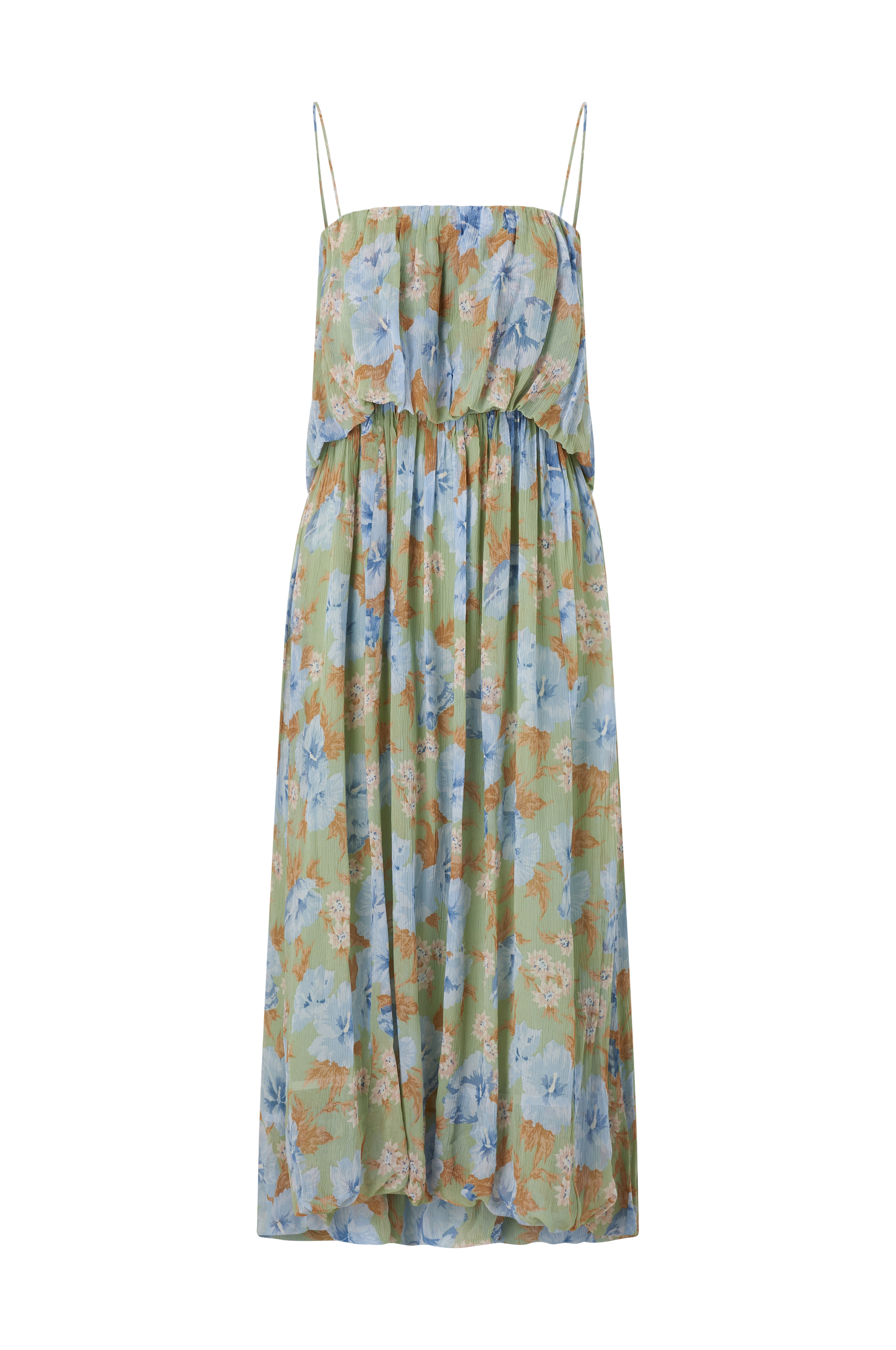 • Ærmeløs model i crepe med tynde, bindbare skulderstropper• Indvendig elastik på toppen• Løs, hængende øvre del• Foret• Længde: 109 cm i størrelse S