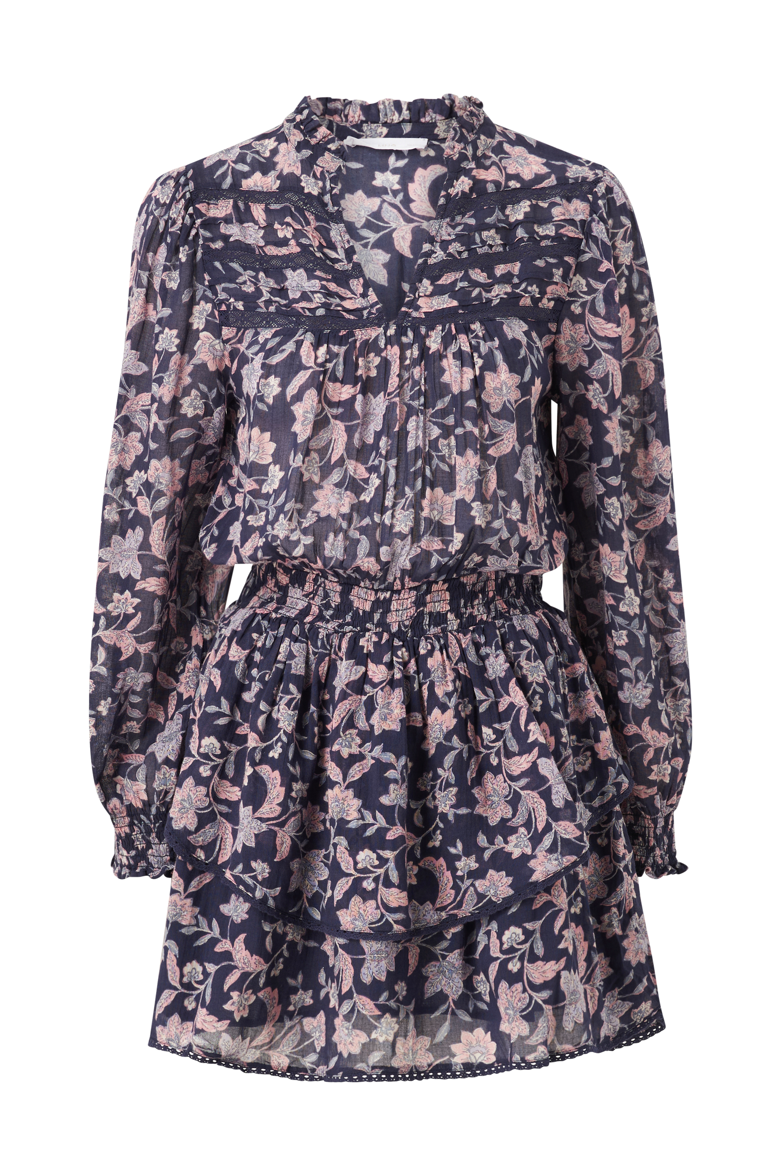 • Model med svaj • Elastiksømme ved taljen • Lille volant i halsen med ventilation foran • Indlagt tip på brystet • Langt, bredt ærme med elastiksømme ved ærmeafslutningerne • Volant på skørtet • For nederst • Længde: 87 cm i størrelse S