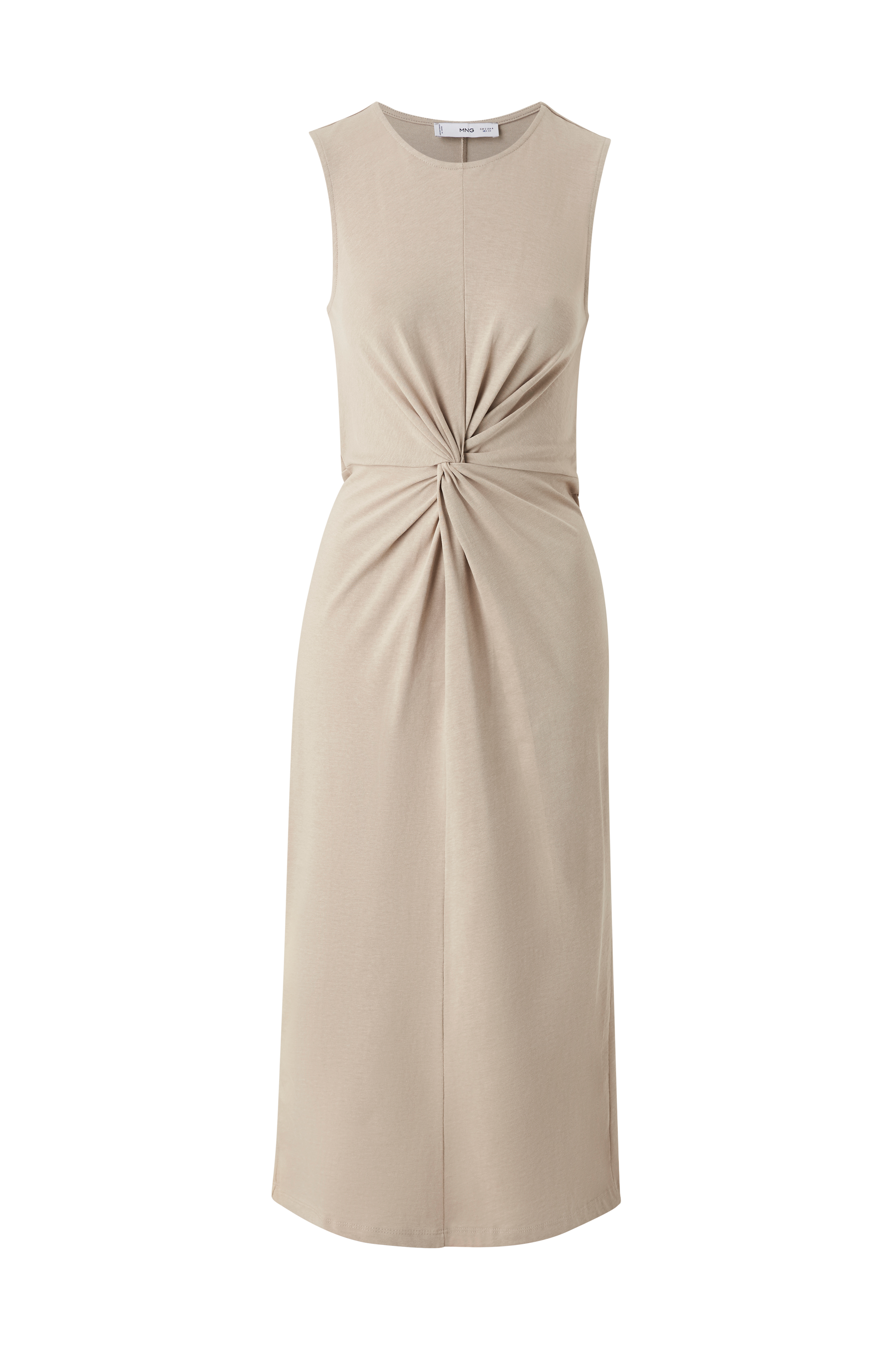 • Ærmeløs kjole i bomuldsjersey• Figursyet pasform• Knudedrapering foran• Slids bagpå• Længde: 120 cm i størrelse S