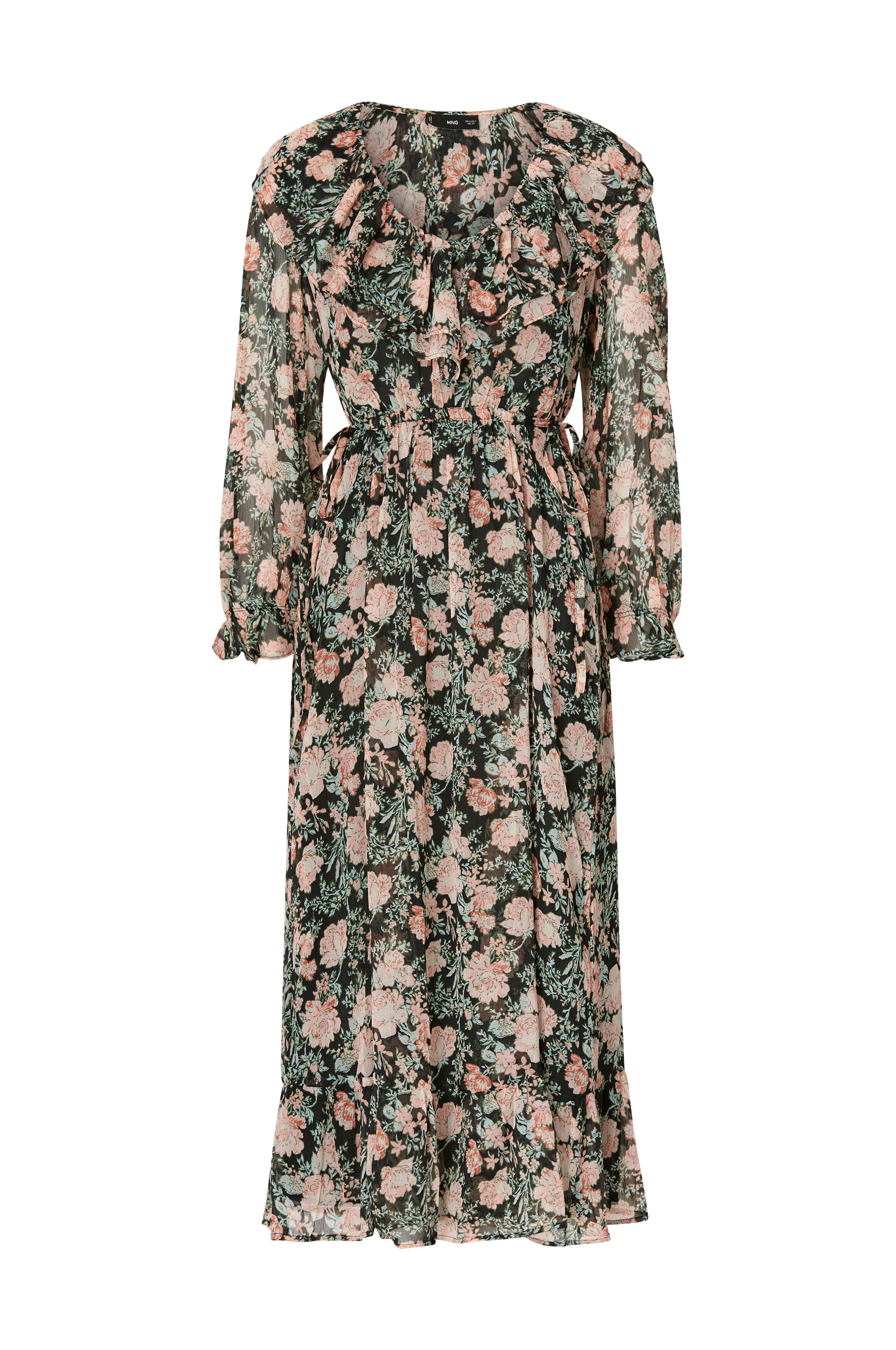 • Kjole i chiffon• V-udskæring med volant• Lange, transparente ærmer med volant ved manchetterne• Bindebånd ved taljen• Volant nederst• Foret• Længde: 126 cm i størrelse S