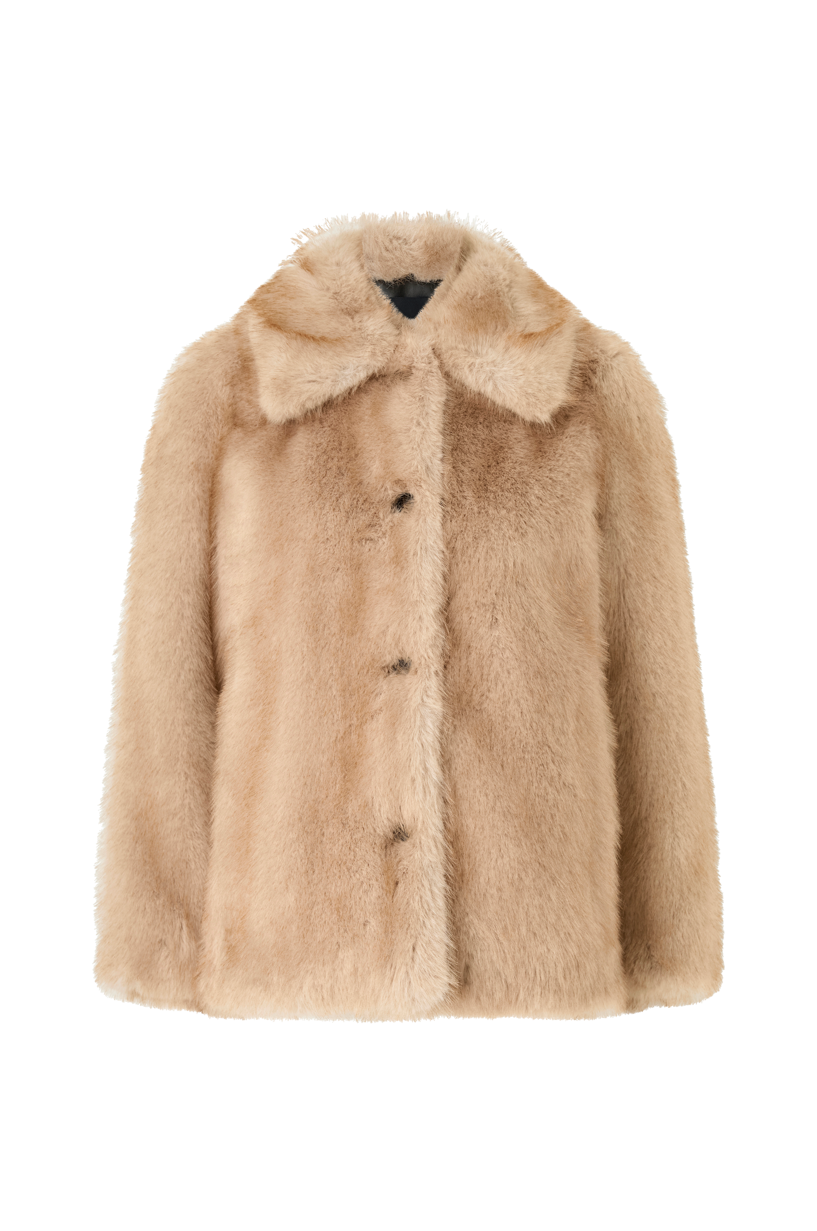 • Kort frakke i kunstskind• Krave• Tekstilforing• Sidelommer• Længde: 68 cm i størrelse S