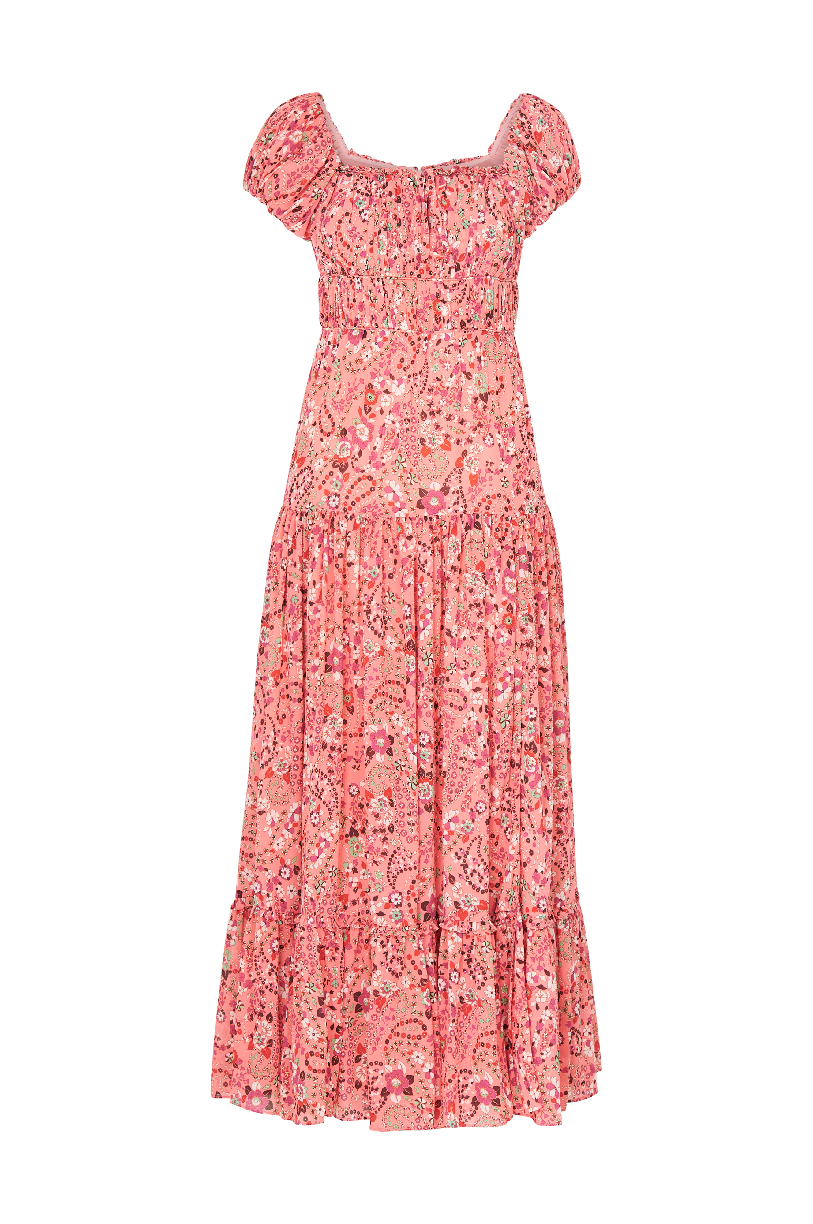 • Korte ballonærmer • Halsudskæring med træksnørre og ventilation foran • Nedre del med svaj med volant • Tynd kvalitet • For i chiffon • Længde: 140 cm i størrelse S • Produktet indeholder genindvundet materiale, som genbruges for at reducere mængden af affald samtidigt med at der ikke anvendes nye ressourcer.