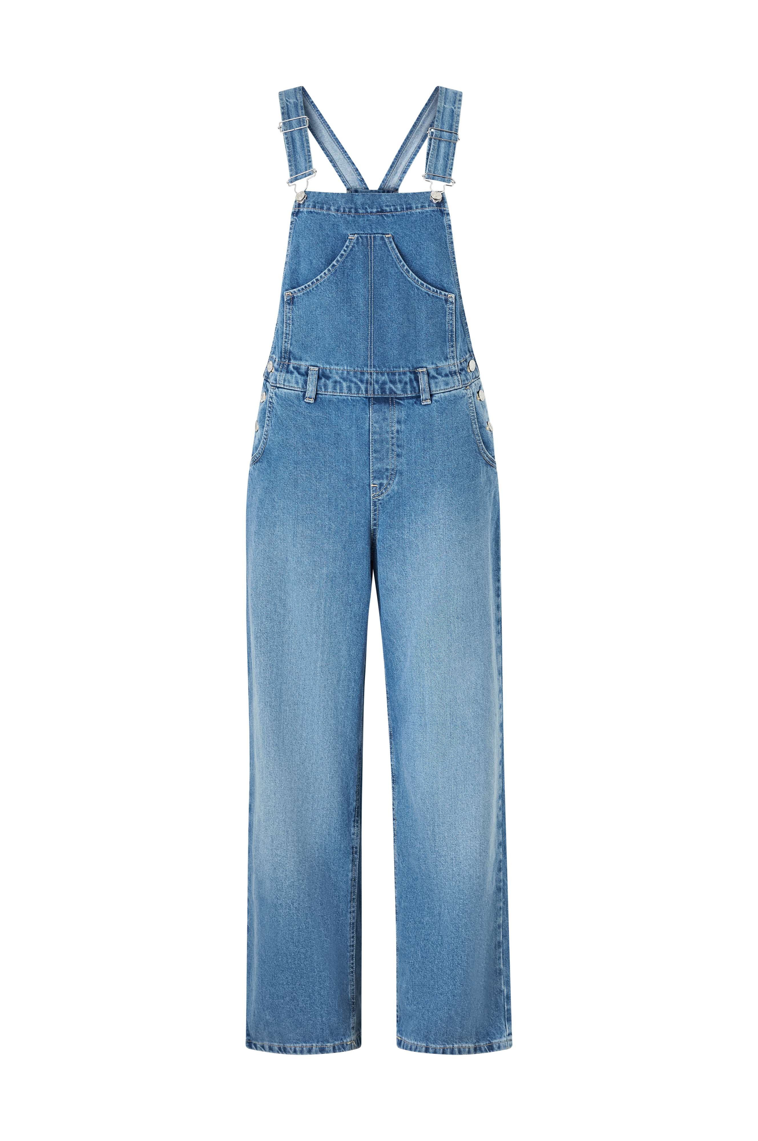• Overalls i denim• En forlomme• To baglommer• Sidelommer• Justérbare seler• Knaplukning i siderne• Bælteløkker• Længde: 153 cm i størrelse XS